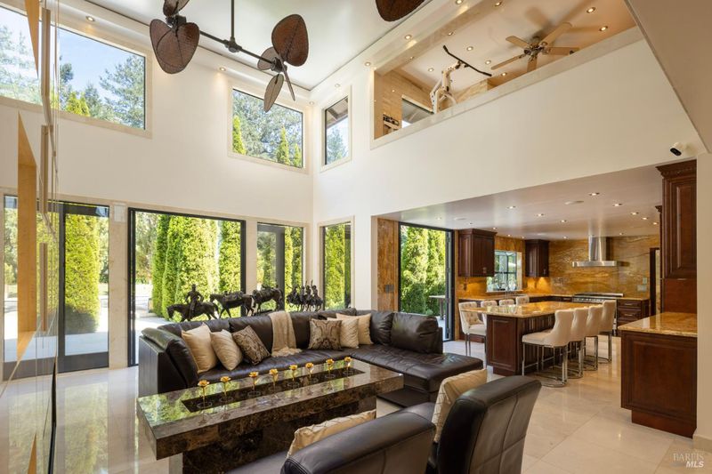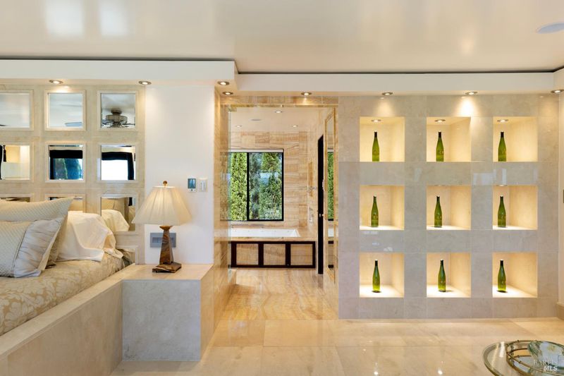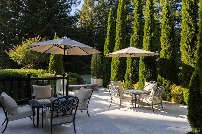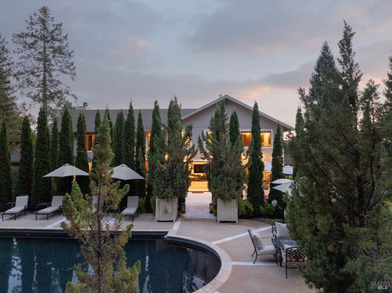 Sitting on prestigious Howell Mountain, 330 Brookside Drive reveals itself as a private Eden. The 6.25-acre estate unfolds in layers: formal gardens scented with herbs and seasonal floral choices, gravel paths that meander past the landscaped grounds into a 2.5-acre Cabernet Sauvignon vineyard that looks across to the historic Ladera vineyard; acquired by the Getty family in 2016 as part of Cade Winery's 13th Vineyard.'' Inside, the main residence expresses intimate luxury. Four ensuite bedrooms balance light-filled living spaces, and baths clad in imported marble and onyx offer chromotherapy tubs and steam showers. A sauna and gym loft provide sanctuary; a Sonos system sends music through more than forty speakers. Guest suites gaze toward the vines and gardens. From the primary suite, French doors open onto a broad terrace where the panorama of Wine Country is perfectly framed. Life spills outdoors in every season. A cypress-lined pool/spa areas invite languid afternoons; fire-warmed patios encourage elegant soirees; and a custom River of Fire'' installation adds a dramatic frame to the frontal landscape. Two separate guest cottages with two bedrooms and two baths each, tuck discreetly into the grounds, creating a multi-home compound without sacrificing privacy.