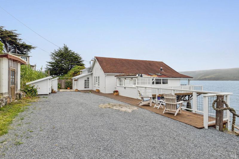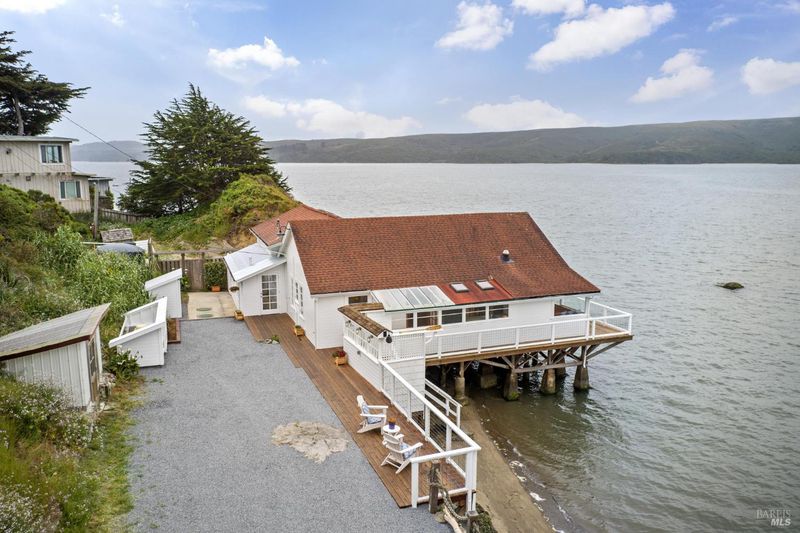 Tucked away at the very end of the lane, this seaside cottage is part of a quiet enclave of waterfront homes along the unspoiled eastern shore of Tomales Bay. Here, life unfolds to the rhythm of the tideswith panoramic bay views and breathtaking sunsets visible from nearly every room.The open floor plan seamlessly blends indoor and outdoor living, making it the perfect setting for a laid-back coastal lifestyle. Launch your kayak or paddle board directly from the property and set off into the calm, sparkling waters just steps from your door.When you're ready to explore the local flavors, you'll find a variety of iconic destinations just minutes away: savor fresh oysters at Hog Island Oyster Co.Enjoy waterfront dining at Nick's Cove or Tony's Seafood, stop by the beloved Marshall Store for smoked delicacies, or unwind with a cocktail and stunning views at Marconi Cove Lodge.Tomales Bay is also a haven for bird lovers. Flocks of elegant egrets, great blue herons, and curlews frequent the shoreline, while pelicans and gulls wheel overhead. In winter, migrating shorebirds fill the skies, making this a front-row seat to one of the region's most vibrant ecosystems. Whether you're seeking peaceful retreat or outdoor adventure.