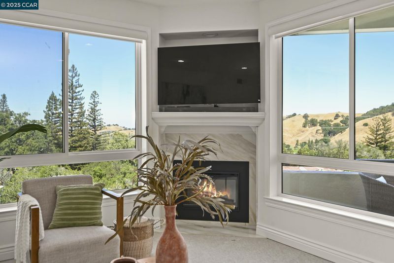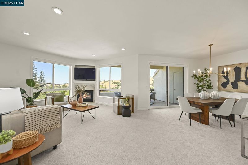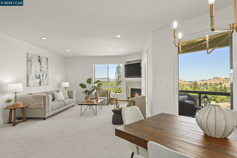 Spectacular Villa Nuevo condo with panoramic Mt. Diablo and hillside views from every window Elevator leads to this spacious 3-bedroom, 2-bath, 1661sf home in Rossmoor. Home has been beautifully updated, featuring a remodeled kitchen with quartz countertops and Bosch & GE Profile appliances. Family room and formal dining area features a cozy fireplace and patio with views. Newer windows, sliding doors and window coverings. New carpet, luxury vinyl flooring, paint, and new modern lighting add to the move-in appeal. The serene primary suite boasts a private patio with stunning Mt. Diablo views, perfect for morning coffee. Primary remodeled bathroom includes new dual vanity and luxury vinyl flooring. Additional highlights include dedicated laundry with washer/dryer, elevator or one flight of stairs access, one-car detached garage, and covered carport. Enjoy the elevated Rossmoor active lifestyle in this amazing home!