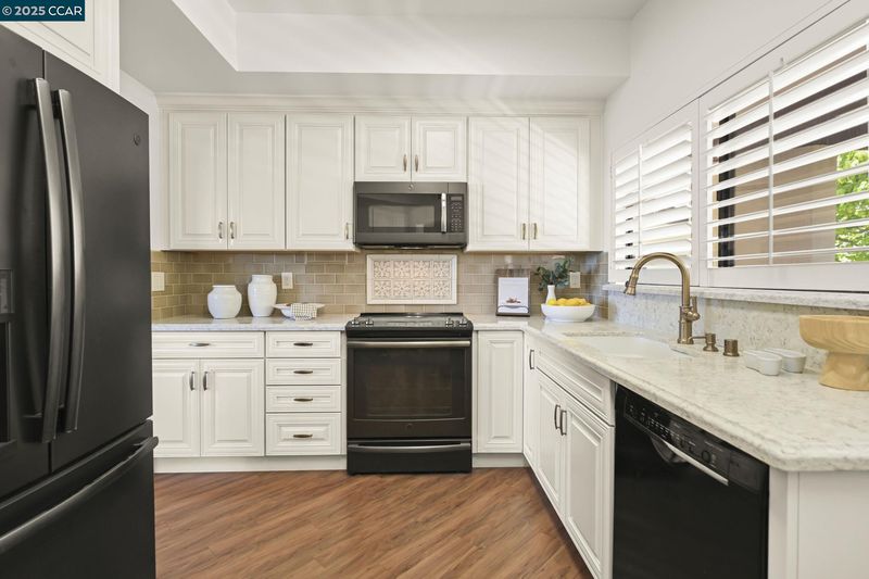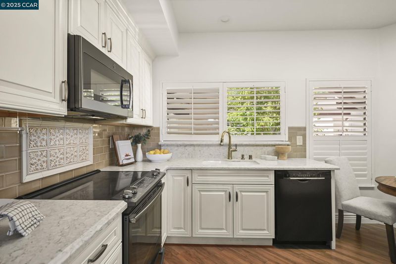 - Dishwasher, Electric Range, Plumbed For Ice Maker, Microwave, Oven, Refrigerator, Stone Counters, Electric Range/Cooktop, Disposal, Ice Maker Hookup, Oven Built-in, Updated Kitchen