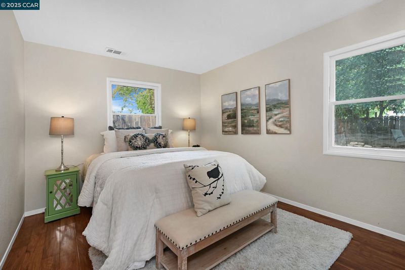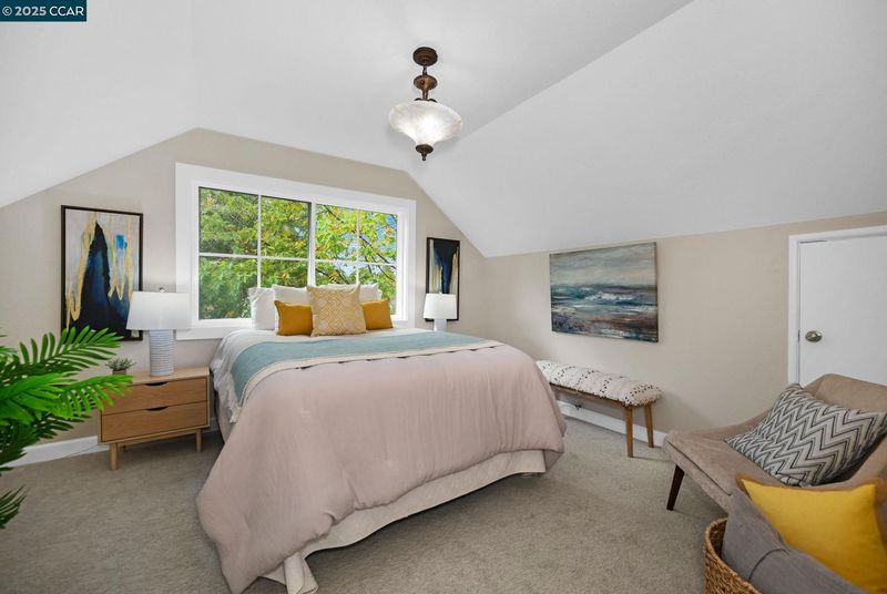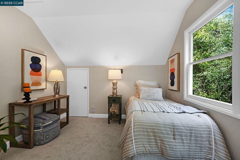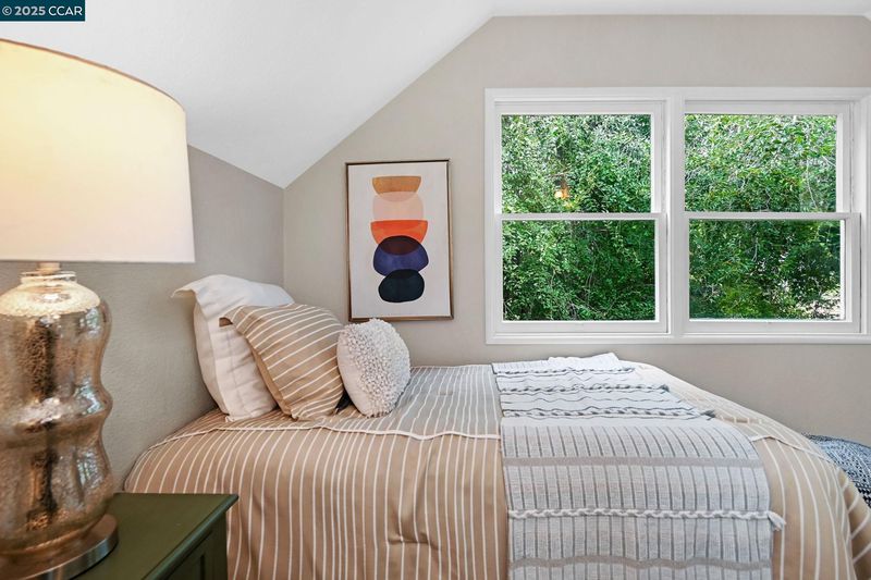 Open Sun 2-4. This Cape Cod Style home has charm and character. The living room has modern engineered wood floors that flow through to the lower bedrooms. The interior has been freshly painted, and the exterior recently painted too. The kitchen has attractive white cabinetry, black stone counters, a Bosch dishwasher and gas freestanding stove. There is a convenient pantry too. There are 2 bedrooms on the main level, with backyard access from the smaller bedroom which would make a great office or hobby room. The upper level & staircase have brand new plush carpeting with 2 bedrooms featuring attic storage and ceilings that enhance the character of the home. This older style home has had many improvements: the roof and gutters are approx. 4 years new, the heater & a/c are approx. 10 years old, and the front siding was replaced in 2024. The electrical panel was upgraded in 2017 and the sewer line replaced in 2008. The spacious backyard has a handy storage shed, lemon, lime and orange fruit trees, plus other shade trees perfect for those hot days. Close to the canal path, Markham Nature Park and several shopping centers makes this an ideal location.