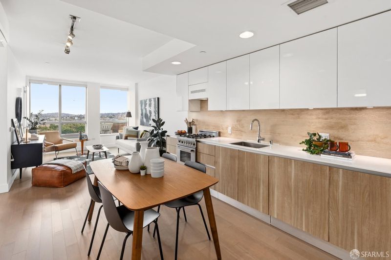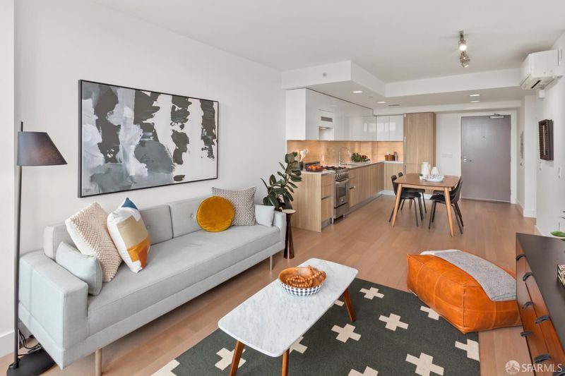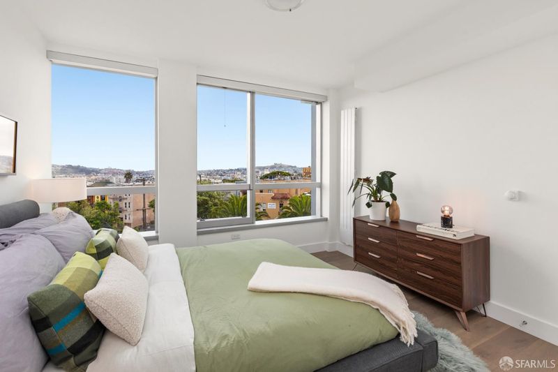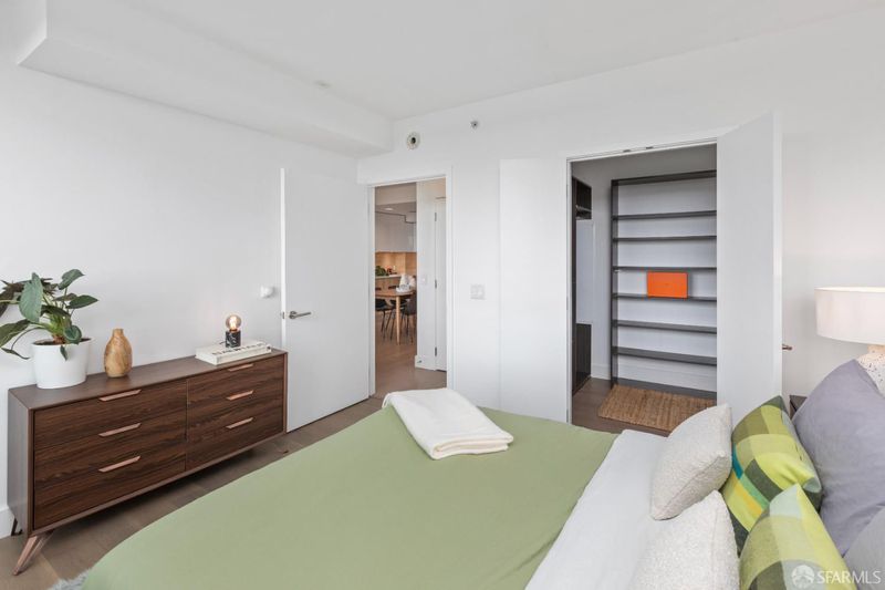 Set within Linea Condominiums, Residence 509 is a south-facing one-bedroom, one-bathroom home defined by natural light and open outlooks, with views to the Bay extending beyond the cityscape. Expansive windows anchor the living space, drawing light deep into the home and creating a bright, open atmosphere throughout the day. The layout is both efficient and well-proportioned, with a seamless connection between the living, dining, and kitchen areasdesigned for both everyday living and comfortable entertaining. The kitchen reflects a clean, modern aesthetic with flat-panel cabinetry, including paneled appliances, creating a cohesive, design-forward look. Quartz countertops, a stone backsplash, and a suite of Liebherr, Bosch, and Bertazzoni appliances complete the space, complemented by Grohe fixtures for a refined, European sensibility. The bedroom accommodates a king or queen-sized bed with room for nightstands and a dresser or desk. It includes a large walk-in closet with built-ins and French doorsa thoughtful combination of scale and design. Uncommonly spacious, the bathroom features Grohe fixtures, a deep bath, and a layout that offers both comfort and ease of movement. Storage is a standout, with a large coat closet and linen closet, both with built-ins, adding meaningful functionality. Laundry is located in a separate in-unit closet, offering convenience without compromising living space. Recently installed air conditioning enhances year-round comfort. Residents enjoy a landscaped courtyard and shared roof decksubtle extensions of the home with outdoor space and City and Bay views. Leased parking available a few doors away.