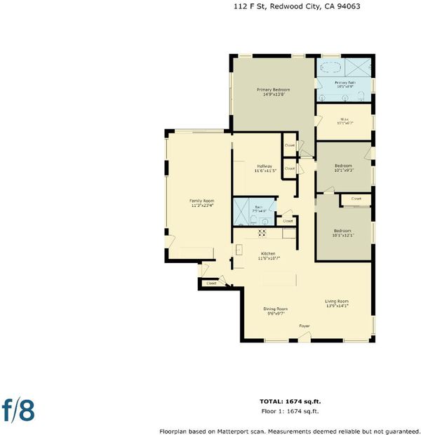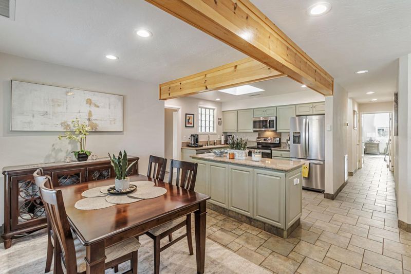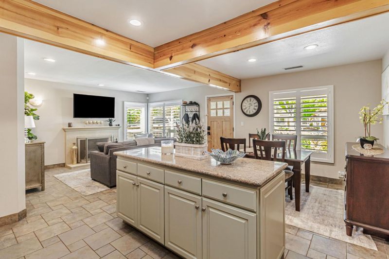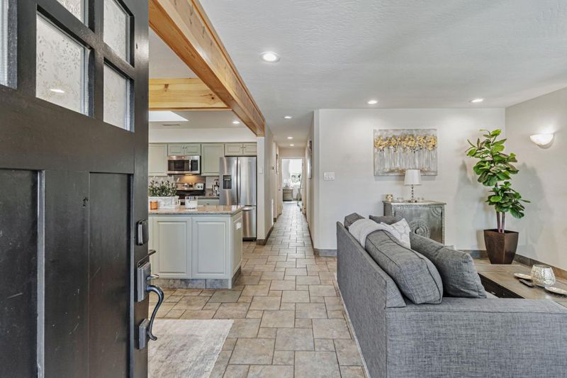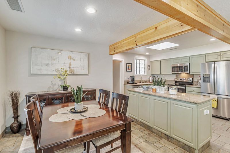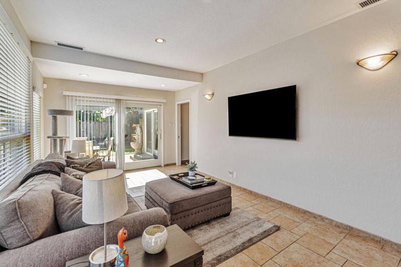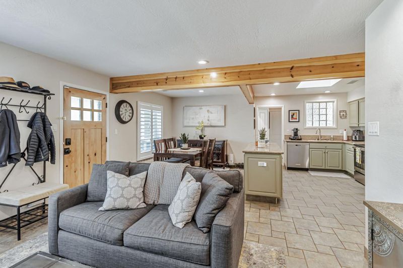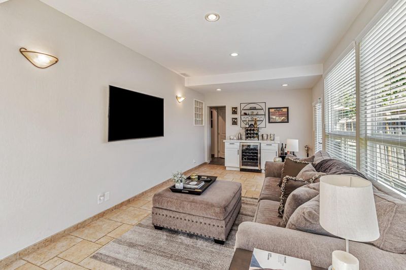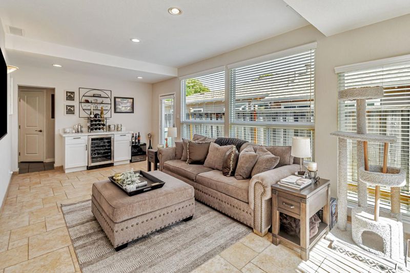 Offer accepted subject to the sale of buyer's property bring offers.Welcome to this charming 3BD/2BA home in vibrant Redwood City. Spanning 1,450 sq ft, it offers an open layout with a cozy fireplace, exposed beam ceilings, skylight, and a kitchen featuring granite counters, stainless steel appliances, and an island. The home includes three bedrooms (one used as an office), a flex space, and a separate family room with abundant natural light and a custom bar with wine fridge. The spacious primary suite features high ceilings, a walk-in closet with custom organizers, and a spa-like bath with double sinks and oversized tub. The updated hall bath includes a stall shower. The flex room is perfect for a home office, gym, or playroom and leads to the family room and backyard. Outside, enjoy a level yard with patio, gazebo, BBQ area, artificial lawn, mature landscaping, and a fruiting orange tree. Additional features include owned solar panels, a one-car garage with laundry, new driveway pavers, new garage door, and updated window coverings. Conveniently located near downtown Redwood City, shopping, dining, and public transit.