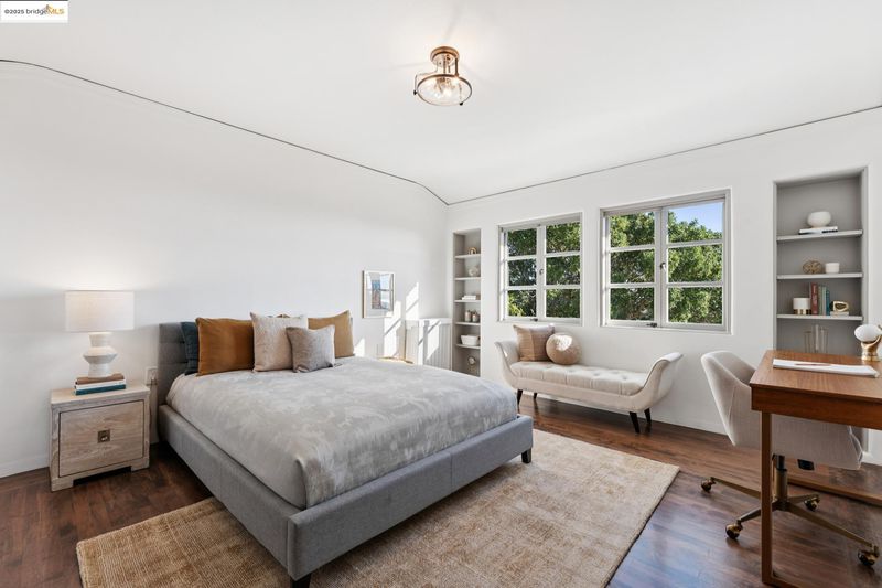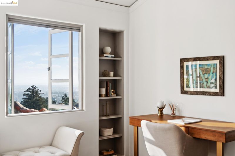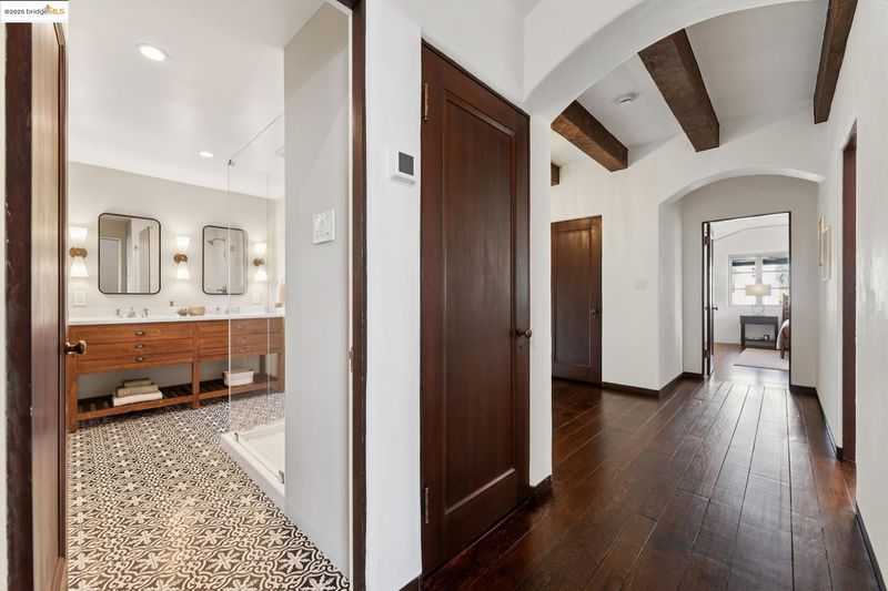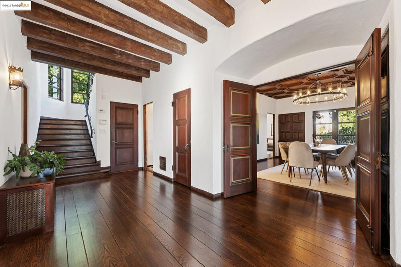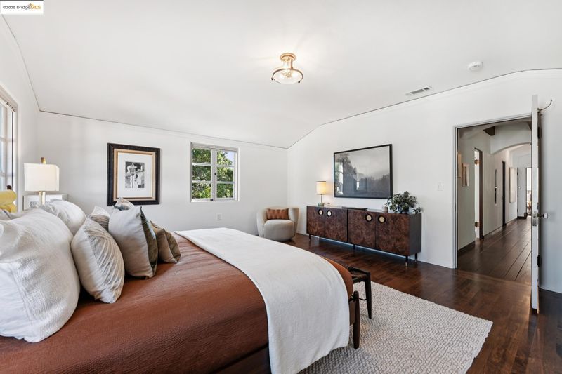 Exquisite 1928 Spanish Revival estate by renowned local architects and engineers Reed & Corlett, this grand and distinguished residence evokes an era of timeless craftsmanship and historic artistry. Perfectly poised along the Piedmont border in one of Oakland’s most prestigious enclaves, the property spans over half an acre of level, enchanting gardens amongst majestic oaks, offering serenity, privacy, and sweeping Bay views from nearly every vantage. Enjoy level-in entry to an expansive 5-bedroom, 3.5-bath primary residence, where a brilliant floor plan allows graciously proportioned formal spaces to flow effortlessly together, all bathed in natural light and enriched with period detailing throughout. A breathtaking Great Room of heroic scale, crowned by soaring hand-hewn beams, commands a sense of romantic permanence, while the formal dining room, adorned with hand-painted artesonado ceilings, showcases the artistry of its era. Beyond the main home, a private ensuite casita, artist’s studio, and convenient level-in 3-car garage complete this regal property—uniting architectural pedigree with refined livability for today’s modern lifestyle. Minutes from Montclair Village, Park Blvd, and SF/Hwy access. A rare legacy estate for generations to come.