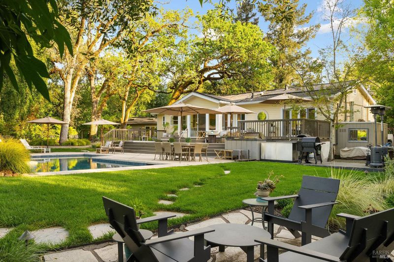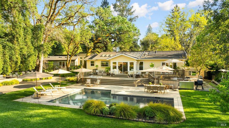 Big price reduction. Nestled in the heart of downtown Glen Ellen, this stunning single level property offers a main house with 3 bedrooms and 2 baths, complemented by a charming 2-bedroom, 1-bath detached guest house. Set on over half an acre, the expansive grounds feature beautifully landscaped gardens, seven heritage oak trees, a sparkling pool, spa, and a bocce ball court, perfect for outdoor entertaining. An outdoor kitchen adds to the allure of this private oasis, blending relaxation with luxury in one of Sonoma County's most desirable locations. Ideal for multi-generational living or as an income-producing retreat, this home is a rare gem in a prime location with public utilities.