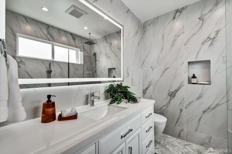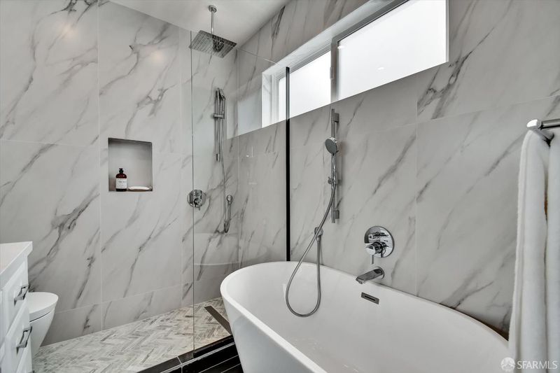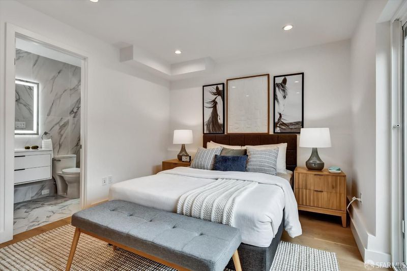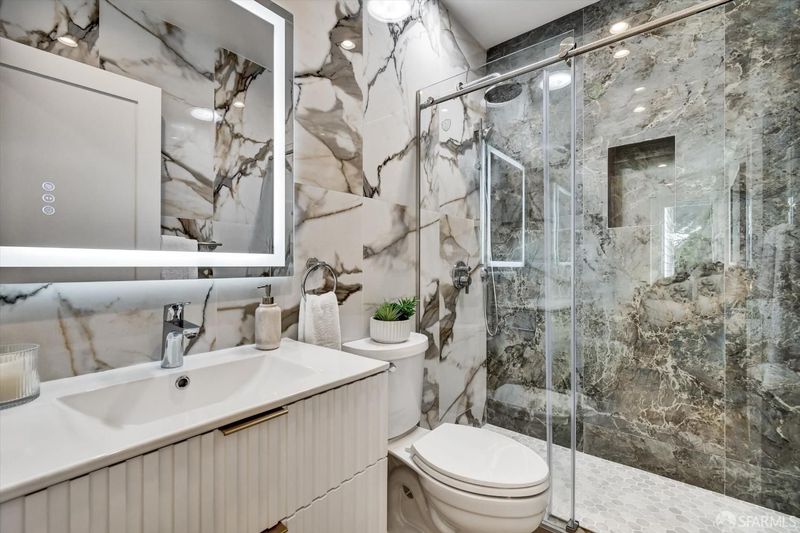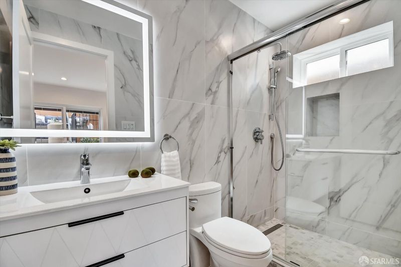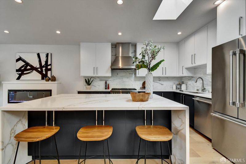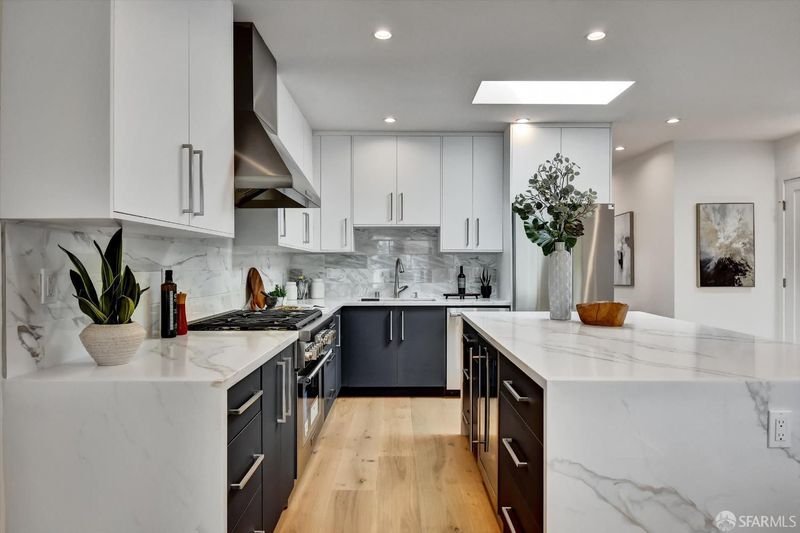 Spectacular Outer Richmond home, completely reimagined and renovated throughout. Ultra modern, open-concept layout features an airy, elegant space for entertaining, dining, lounging and cooking. Bay window has some views, a lovely neighborhood outlook and gives a lot of light. Massive, gourmet kitchen boasts Thermador stainless appliances and an awesome center island, which doubles as a breakfast bar. Gorgeous, wide-plank hardwood floors, skylight, recessed lighting, and a super cool electric fireplace create a cheerful environment to enjoy your amazing home. Radiant heat throughout the house provides the perfect temperature. Three en-suite bedrooms are on the main level, including a primary bedroom suite. There is also a half bath for guests. Down stairs family/media space with wet-bar is ideal for a TV room or home office. There are two additional bedrooms and two full bathrooms on the lower level. Delightful back yard with a centerpiece deck is perfect for summer BBQs! Separate entry to the lower level offers great flexibility. Finished, large garage with ample storage. Beautiful home in a prime location; close to Lincoln Park, golf course, Lands End trails, & Ocean Beach.
