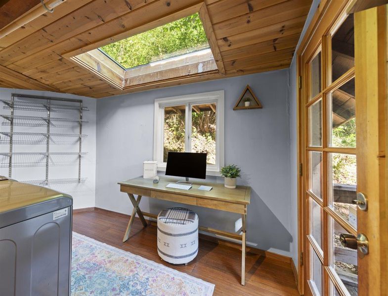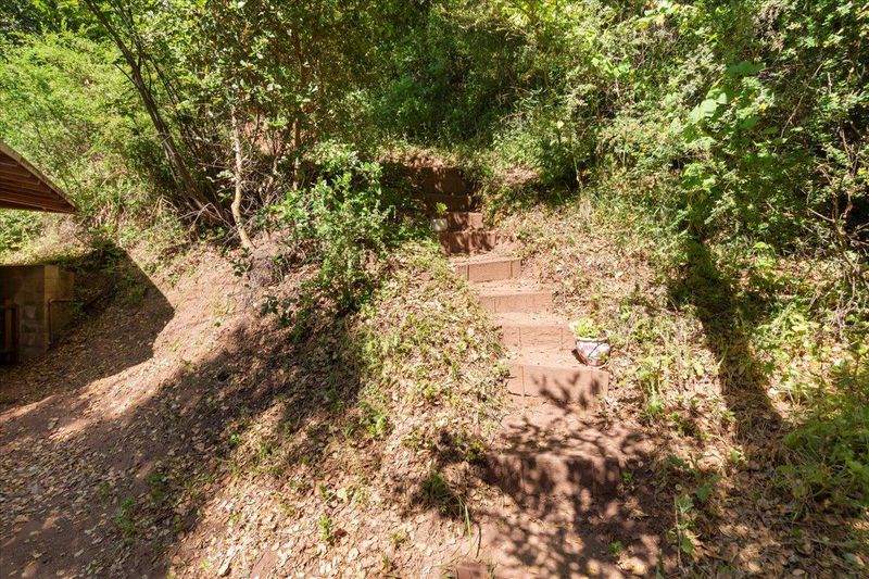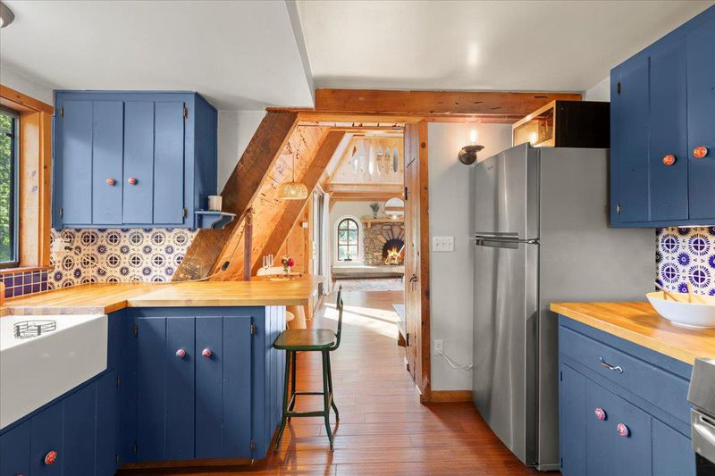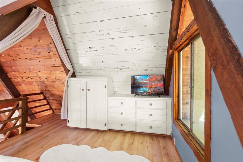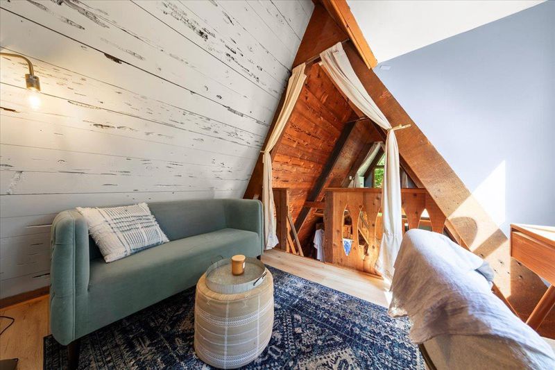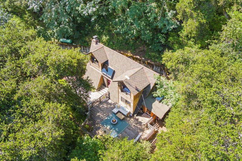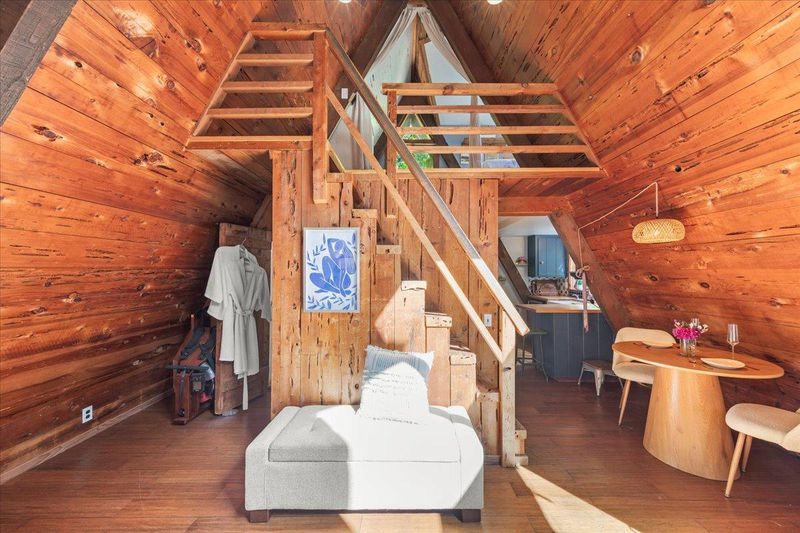 Tucked into 2.5 hillside acres next to Garland Park's Kahn Ranch, this 2-bedroom, 1-bath A-frame cottage blends rustic charm with modern comfort. A stone fireplace, pecky cedar, vaulted ceilings, and skylights enhance the open farmhouse kitchen, dining nook, and living area. Loft-style bedrooms and a separate laundry/mudroom add function. The bathroom has a walk-in tile shower, and a new water heater plus lifetime shingle roof provide peace of mind. Outside, enjoy an enchanting garden, well-lit driveway, and newly installed parking area. The expansive deck and private trail offer mountain views and easy access to nature. Minutes from a seasonal waterfall, creek, and the Village yet bordering open space this retreat is ideal for full-time living or a weekend escape.