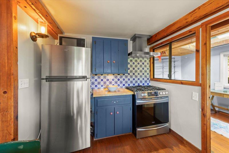 - 220 Volt Outlet, Countertop - Other, Dishwasher, Exhaust Fan, Garbage Disposal, Hood Over Range, Microwave, Oven - Gas, Oven - Self Cleaning, Pantry, Refrigerator