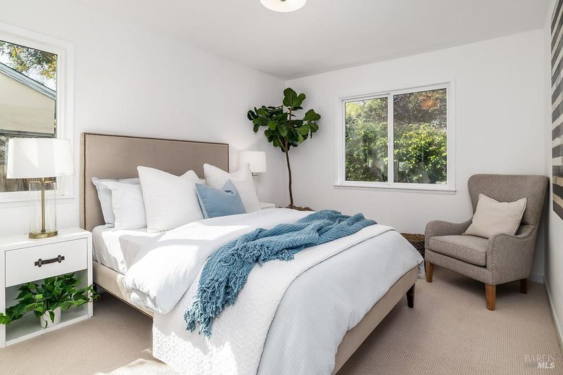 Tucked away in the welcoming San Rafael Meadows neighborhood, this charming single-level home perfectly blends comfort, character, and convenience. Featuring 3 bedrooms and 1 bathroom across 1,073 square feet, it offers a bright and open layout designed for easy living. The spacious living and dining combo is filled with natural light, highlighted by warm wood floors and a cozy gas fireplace that creates an inviting atmosphere. The kitchen offers sleek quartz countertops, ample cabinet storage, and a sunny breakfast area, an ideal spot to enjoy your morning coffee. Each bedroom is a comfortable size with plush new carpet and plenty of closet space, while the bathroom features a clean shower-over-tub combo. Outside, enjoy a freshly landscaped backyard with a lush new lawn, a beautiful flagstone patio, and multiple areas for entertaining, play, or simply relaxing. The inviting front porch and two-car garage add both charm and practicality. With easy access to transportation services, great restaurants, and the lively local farmers market, this home offers the perfect blend of warmth, comfort, and convenient San Rafael living.