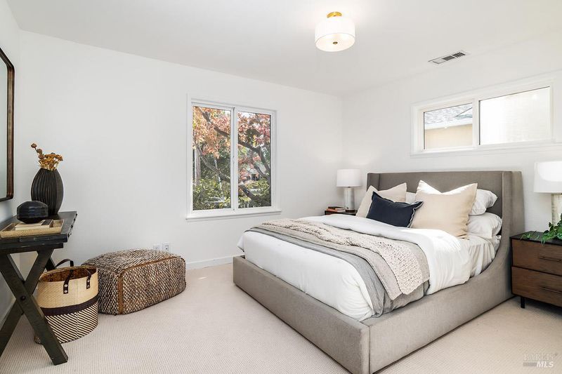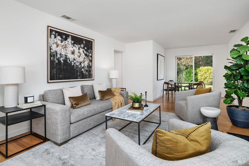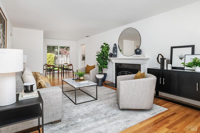 Tucked away in the welcoming San Rafael Meadows neighborhood, this charming single-level home perfectly blends comfort, character, and convenience. Featuring 3 bedrooms and 1 bathroom across 1,073 square feet, it offers a bright and open layout designed for easy living. The spacious living and dining combo is filled with natural light, highlighted by warm wood floors and a cozy gas fireplace that creates an inviting atmosphere. The kitchen offers sleek quartz countertops, ample cabinet storage, and a sunny breakfast area—an ideal spot to enjoy your morning coffee. Each bedroom is a comfortable size with plush new carpet and plenty of closet space, while the bathroom features a clean shower-over-tub combo. Outside, enjoy a freshly landscaped backyard with a lush new lawn, a beautiful flagstone patio, and multiple areas for entertaining, play, or simply relaxing. The inviting front porch and two-car garage add both charm and practicality. With easy access to transportation services, great restaurants, and the lively local farmers market, this home offers the perfect blend of warmth, comfort, and convenient San Rafael living.