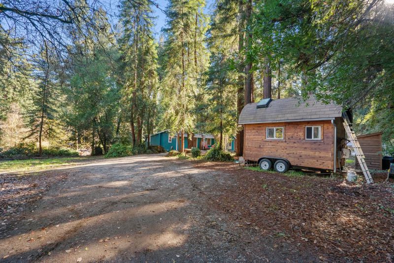 Beautiful Forest Home for Sale! Discover a serene retreat tucked away close to the end of a quiet road, offering unmatched privacy and tranquility. This move-in-ready home features a large, front yard bathed in sunlight, perfect for gardening or outdoor activities. The overall property is primarily flat with a gradual slope, providing ample usable space. There is a fantastic opportunity to expand the existing home or build an accessory dwelling unit (ADU) for guests or rental income. The extensive parking area accommodates vehicles and equipment, and the property includes convenient RV hookups. Recent upgrades include a new roof and and recently painted exterior. With a modern HVAC system and a cozy fireplace in the living room, this home is designed for year-round comfort. The septic system has also passed inspection, ensuring peace of mind. This property includes the option to purchase a charming tiny some separately from the main house sale. This option is ideal for those seeking an alternative living situation or investment opportunities. Conveniently located close to Highway 9, this property offers easy access for commuters heading to Silicon Valley or Santa Cruz. Do not miss this opportunity to own your own piece of paradise.
