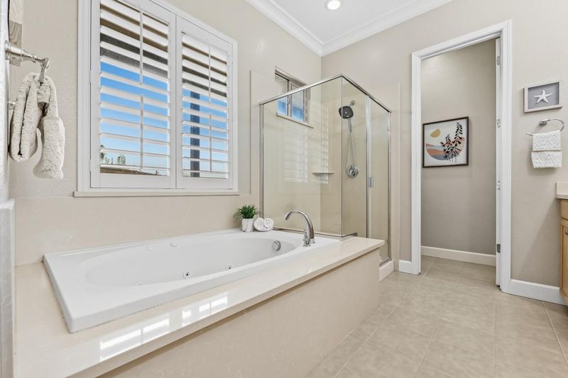 - Double Sinks, Full on Ground Floor, Stall Shower, Tile