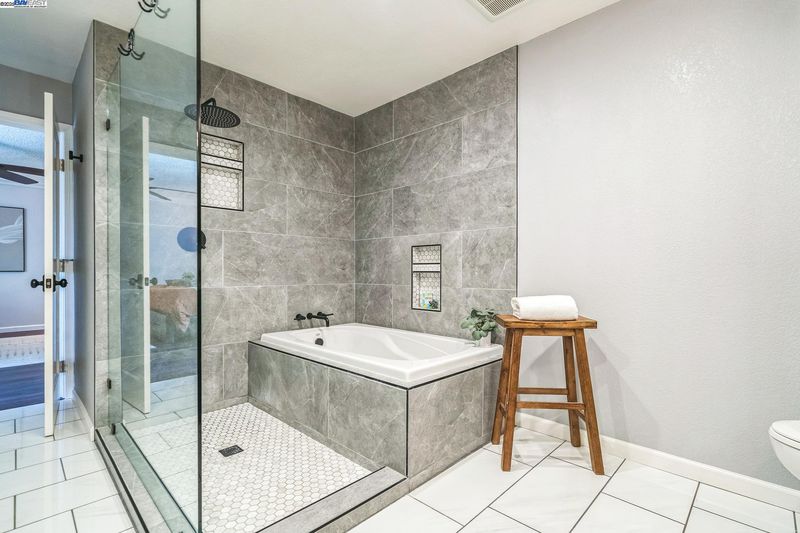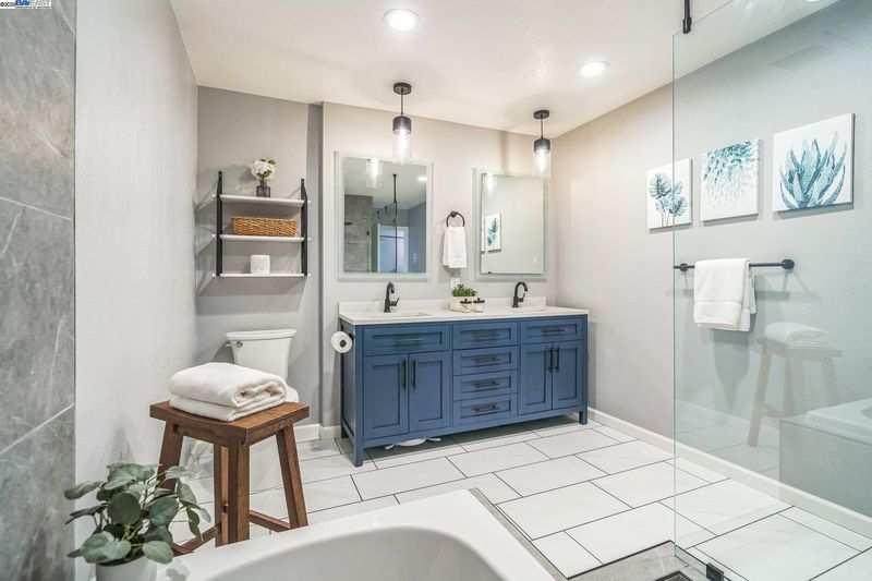 - Shower Over Tub, Split Bath, Stall Shower, Tile, Updated Baths, Double Vanity, Window