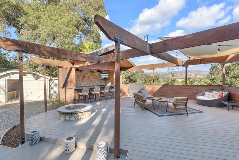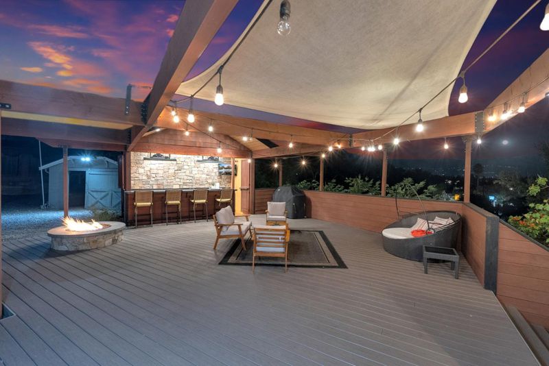 A timeless Craftsman masterpiece nestled on a sprawling over 1/2 acre lot with breathtaking views, just steps from vibrant downtown Morgan Hill. This exceptional home is the perfect blend of classic character, modern comfort, and a truly unbeatable location. The entertainers dream outdoor kitchen and elevated deck overlook rolling hills and sparkling city lights, creating a private resort experience complete with a two-tier black concrete bar, dual refrigerators, kegerator, range, undermount sink, and two Bromic Tungsten Smart Heaters for year-round enjoyment. An awe-inspiring front porch leads inside to rich hardwood floors, crown molding, and custom wainscoting that highlight the stunning living room and executive office framed by tapered columns and a wood beam. The formal dining room features an original pocket door, built-in buffet, and a beautiful chandelier. Two downstairs bedrooms include fully remodeled ensuite baths with designer tile and frameless glass showers. Upstairs, dual primary suites each offer their own distinctive character. One with an oversized farmhouse door, dual closets, fireplace, and modern shower with skylight views; the other with warm wood detail, soaking tub, and dual vanities. Timeless elegance meets modern living in this extraordinary estate.