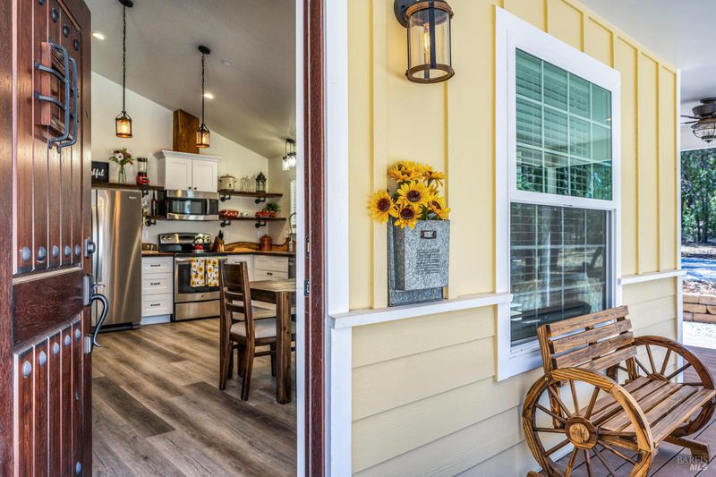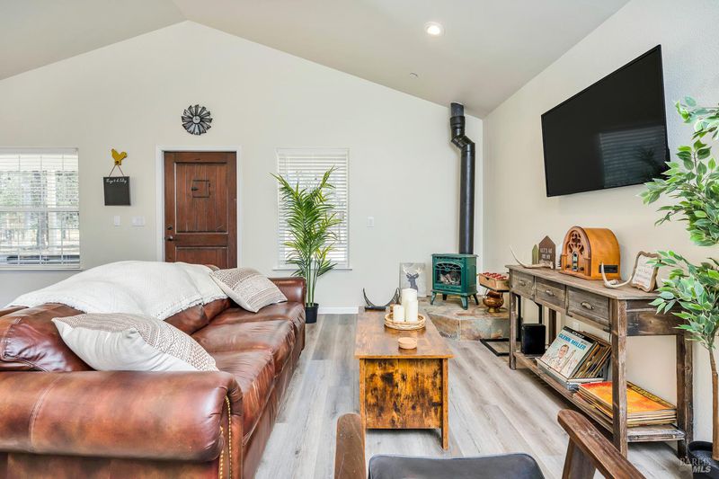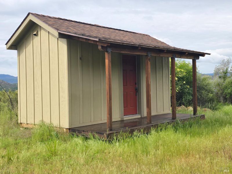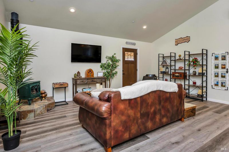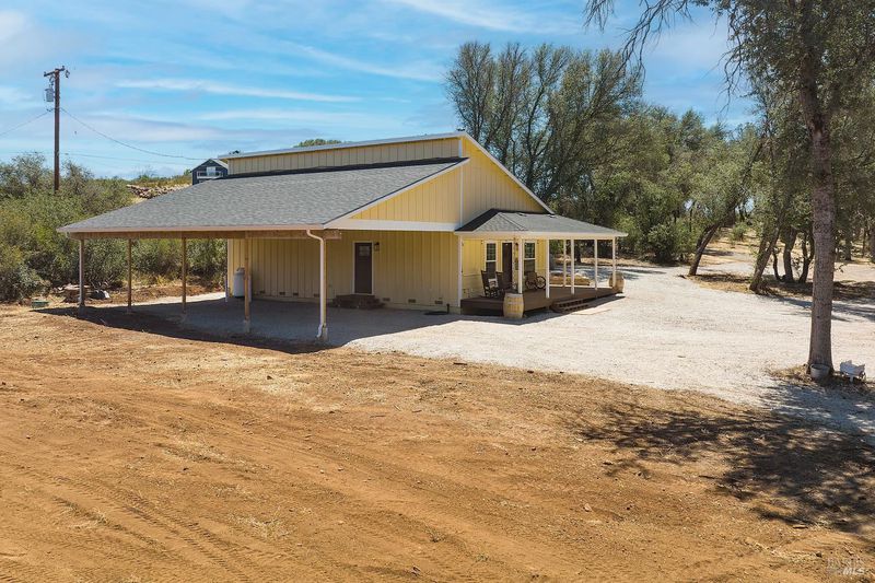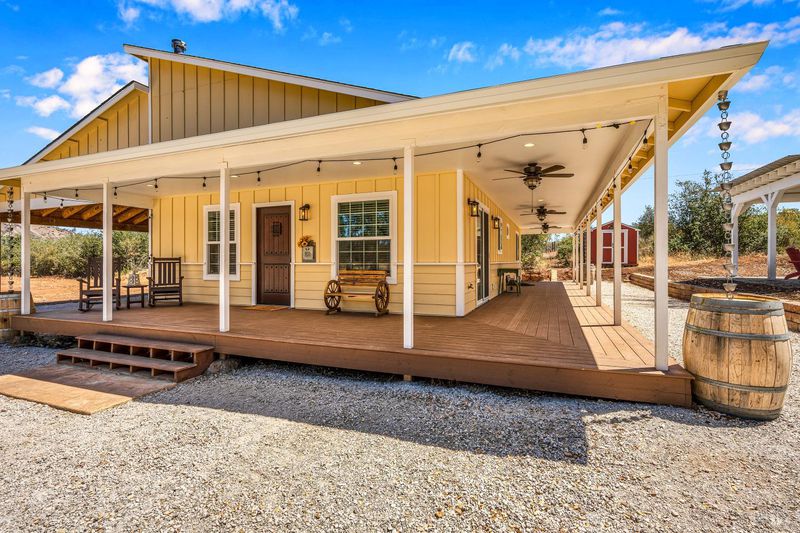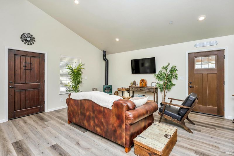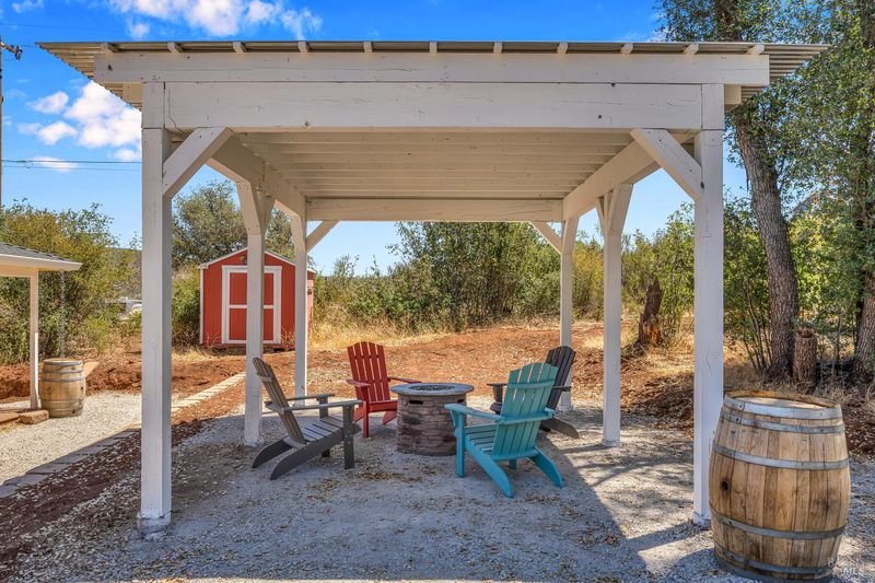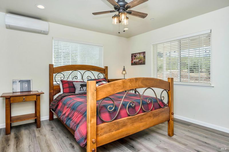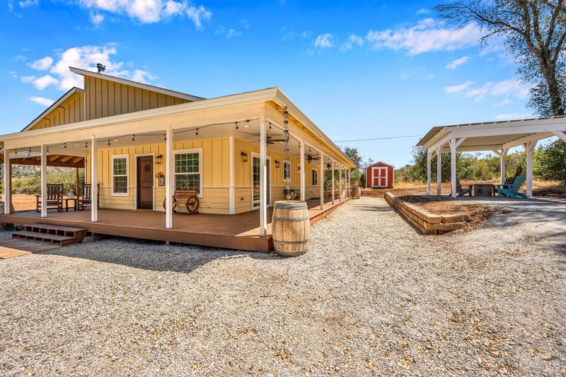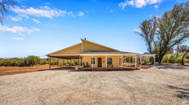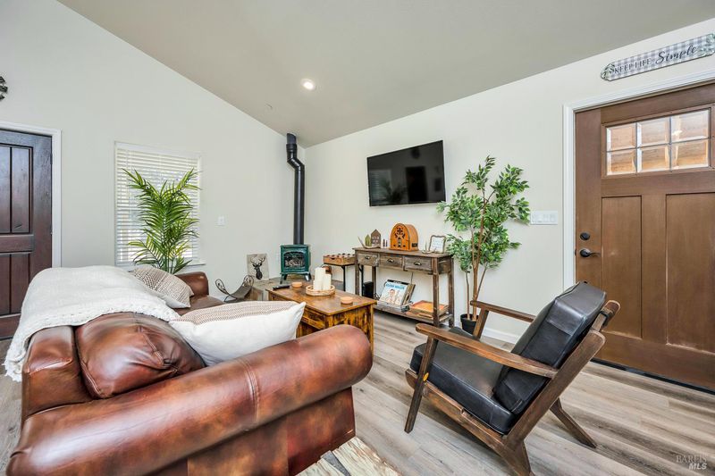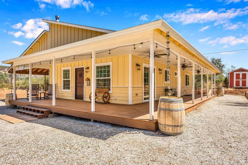 Welcome to your peaceful retreat on 5.36 private acres, where modern farmhouse charm meets contemporary comfort. Enter through the custom steel gate and follow the meandering driveway to a beautifully crafted 2-bed, 1-bath cottage. The open great room features vaulted ceilings, luxury vinyl plank flooring, and a cozy gas fireplace. The stylish kitchen boasts live-edge wood counters, open shelving made from local Cobb Mountain lumber, stainless appliances, and a large farmhouse sink. The spa-like bath includes a deep soaking tub, floor-to-ceiling faux wood tile, and a custom vanity with hammered copper sink. Both bedrooms are spacious with recessed lighting, ceiling fans, and oversized closets. A full laundry room and efficient mini-splits throughout add convenience. Enjoy nature from the covered wrap-around porch or nearby pergola. The oversized carport offers room to expand. A second building site with septic offers panoramic viewsperfect for a guest house or main residence. RV pad with septic, storage/bathhouse, animal pens, and no HOA dues. So many optionsthis property is ready for your vision!