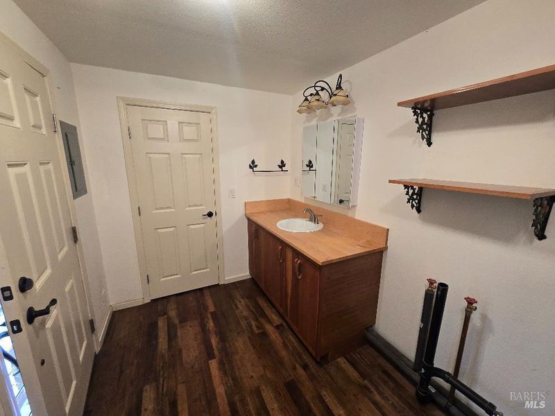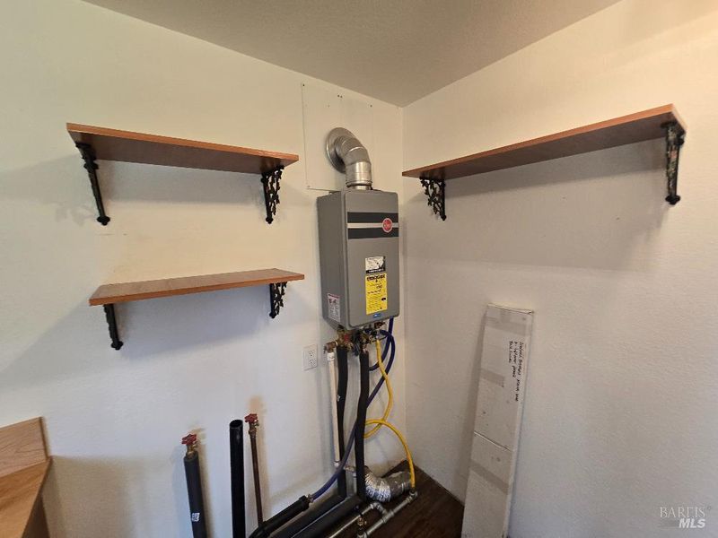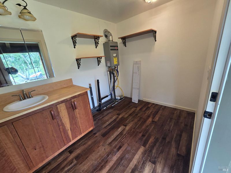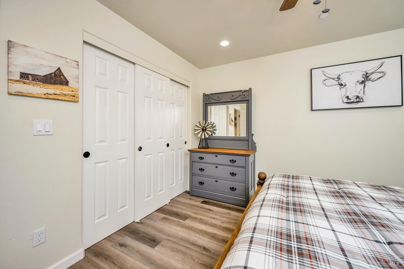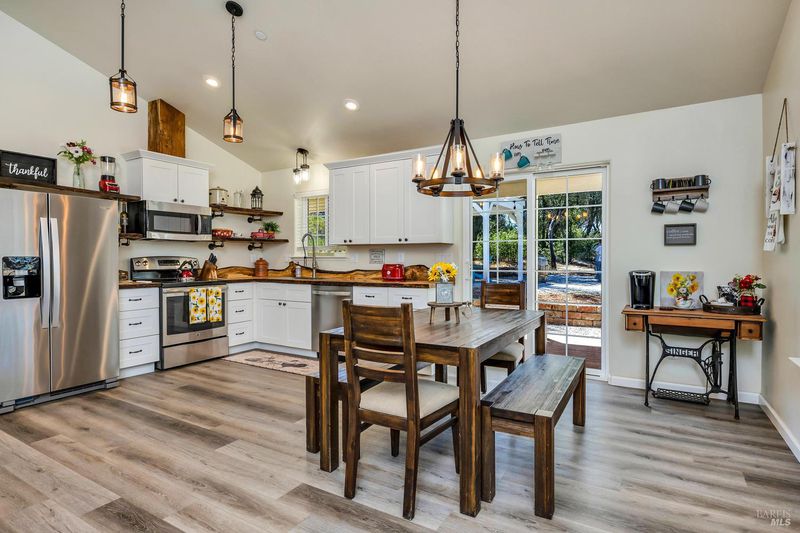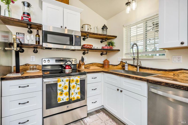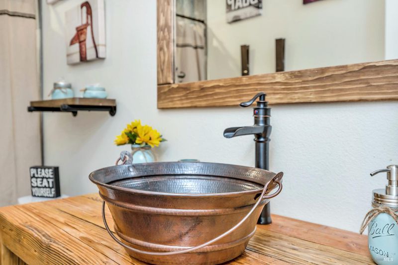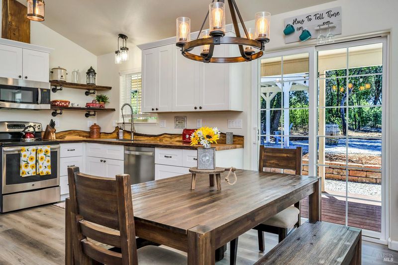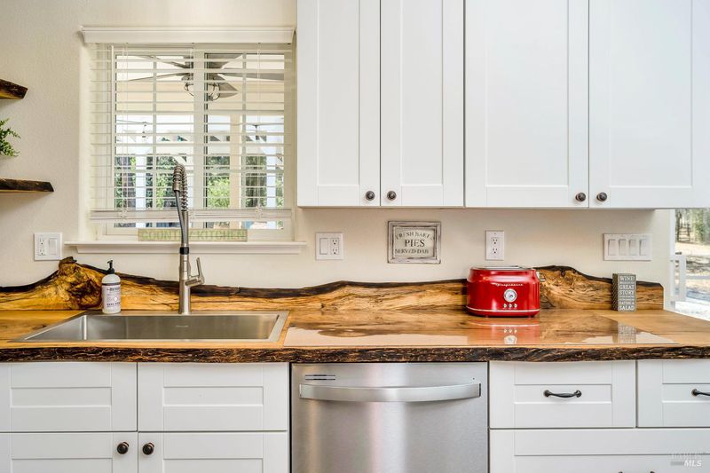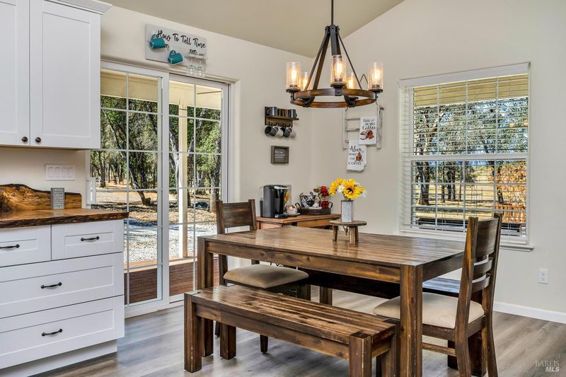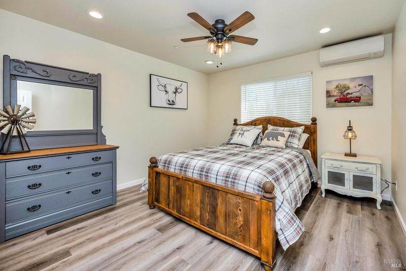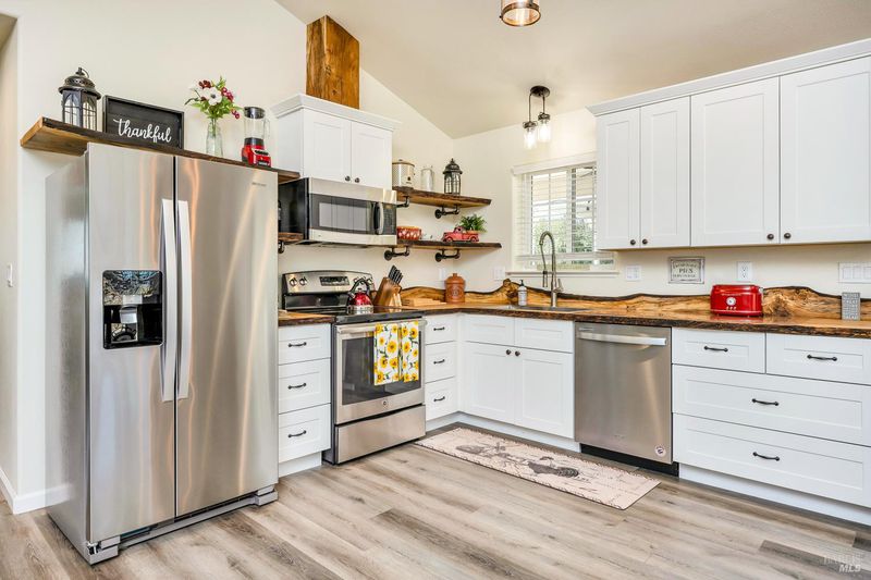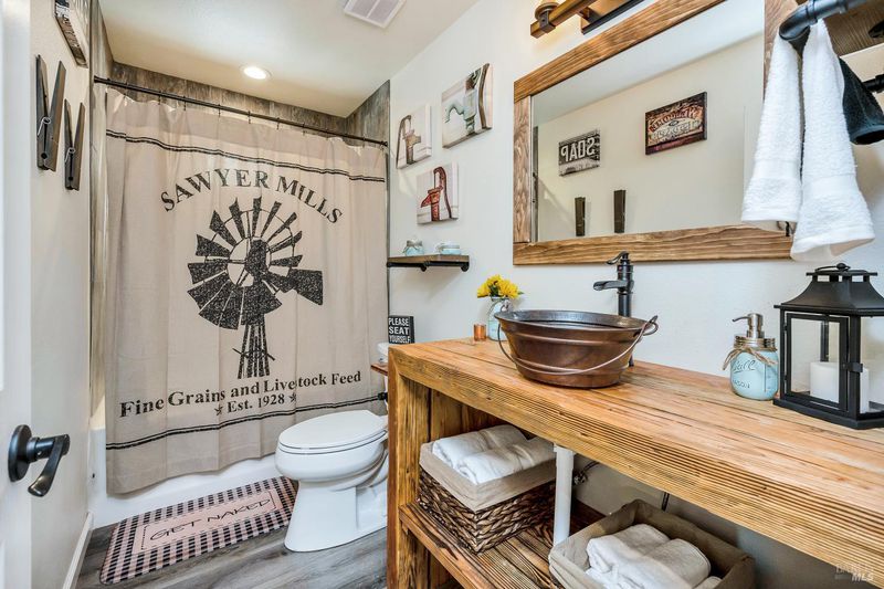 Welcome to your peaceful retreat on 5.36 private acres, where modern farmhouse charm meets contemporary comfort. Enter through the custom steel gate and follow the meandering driveway to a beautifully crafted 2-bed, 1-bath cottage. The open great room features vaulted ceilings, luxury vinyl plank flooring, and a cozy gas fireplace. The stylish kitchen boasts live-edge wood counters, open shelving made from local Cobb Mountain lumber, stainless appliances, and a large farmhouse sink. The spa-like bath includes a deep soaking tub, floor-to-ceiling faux wood tile, and a custom vanity with hammered copper sink. Both bedrooms are spacious with recessed lighting, ceiling fans, and oversized closets. A full laundry room and efficient mini-splits throughout add convenience. Enjoy nature from the covered wrap-around porch or nearby pergola. The oversized carport offers room to expand. A second building site with septic offers panoramic viewsperfect for a guest house or main residence. RV pad with septic, storage/bathhouse, animal pens, and no HOA dues. So many optionsthis property is ready for your vision!