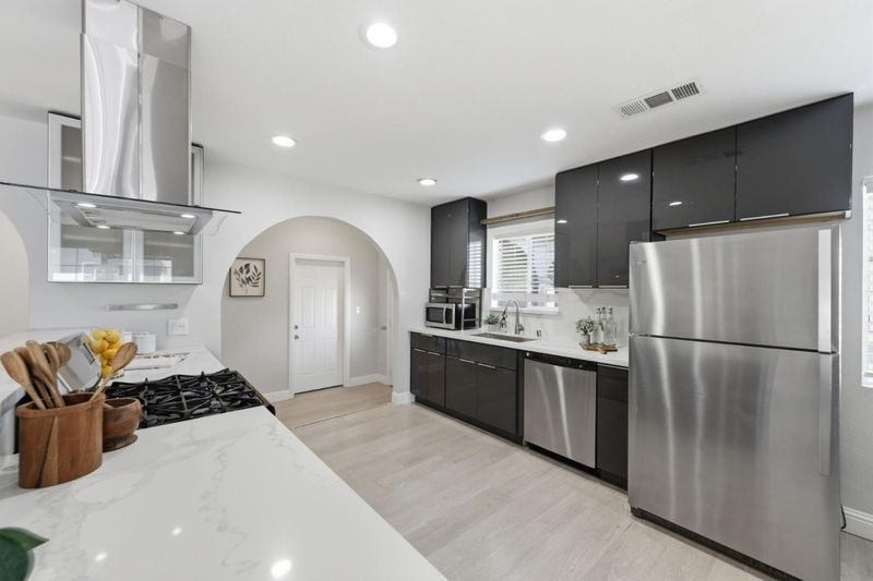 - Countertop - Quartz, Garbage Disposal, Hood Over Range, Oven Range - Gas, Refrigerator