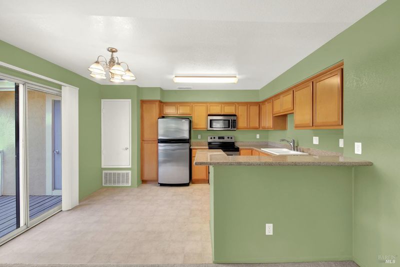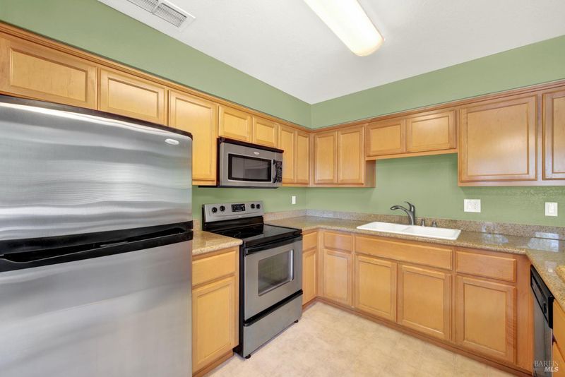 Looking for a secluded, move-in ready condo in one of Raintree Terrace's most desirable, tucked-away locations? You've found it! This charming upstairs 1-bedroom, 1-bathroom home features custom paint colors throughout & a kitchen with granite countertops, stainless steel appliances, & a breakfast bar that opens to the spacious living room. A cozy wood-burning fireplace creates the perfect ambiance for fall & winter evenings. The generous bedroom includes a closet organizer system, & the large bathroom provides plenty of space. Every day convenience is built in with an in-unit washer & dryer. Step outside to your private patio deck with serene hill views ideal for morning coffee or evening relaxation. There's a large storage room for extra storage & a reserved covered carport with an additional parking pass. Raintree Terrace is a gated community offering top-tier amenities: pool, hot tub, fitness center, picnic area, guest parking, & beautifully landscaped grounds. The HOA adds incredible value by covering water, garbage, exterior maintenance, & the roof. Conveniently located near I-80, shopping, dining, & Travis Air Force Base. Some images virtually staged.