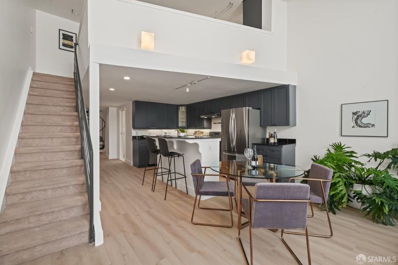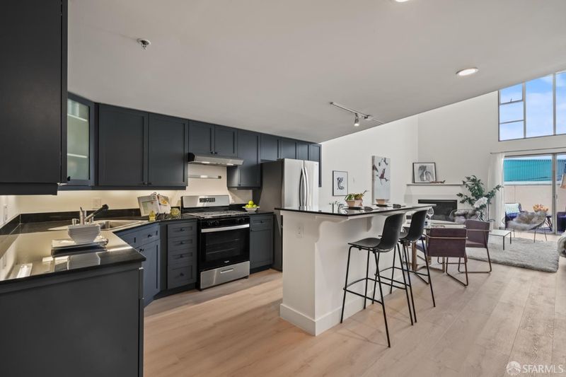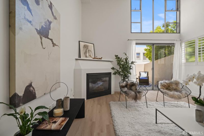 Back on Market, no fault of property. Bright, modern loft in SoMa. Tucked away on a peaceful, tree-lined street, this rare 2-bedroom, 2-bath loft offers high ceilings, generous windows, and new luxury flooring throughout. Near the entry you'll find a versatile nook, perfect for a home office, gym, or any use that suits your needs. The spacious living room, anchored by a cozy gas fireplace, flows effortlessly into a modern kitchen and extends out to a private, tranquil patio. The updated kitchen features granite countertops, stainless steel appliances, a dishwasher, and a large island perfect for cooking or entertaining. The primary suite includes an expansive walk-in closet and a well-appointed bath. Additional highlights include in-unit stacked washer/dryer and two dedicated parking spaces in the attached garage. Conveniently located near Caltrain, BART, Muni, and major freeways (80, 101, 280), you'll also enjoy easy access to Costco, Trader Joe's, Oracle Park, Chase Center, UCSF, and a vibrant mix of cafes, restaurants, and parks.