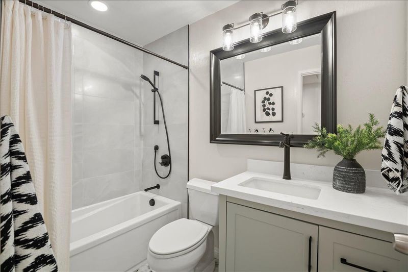 - Double Sinks, Dual Flush Toilet, Full on Ground Floor, Shower over Tub - 1, Solid Surface, Updated Bath