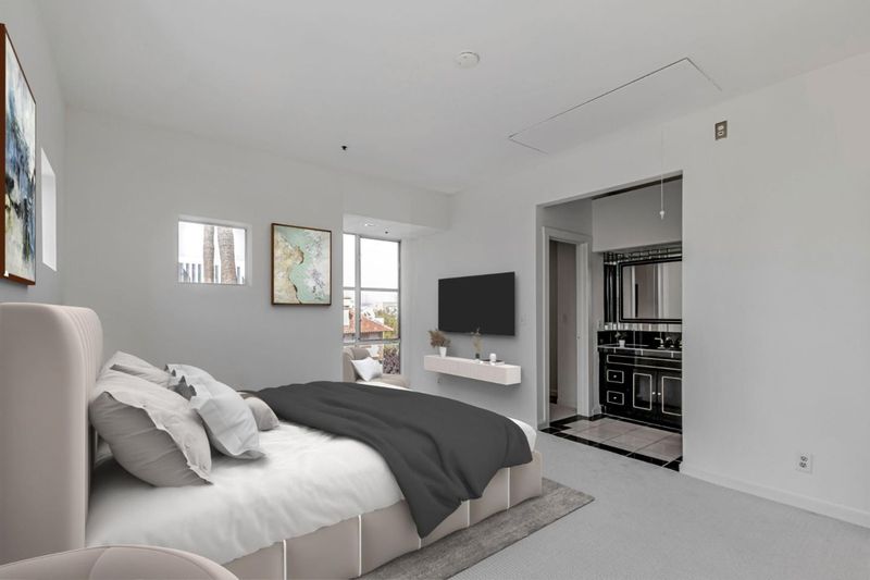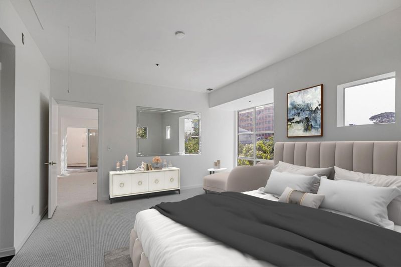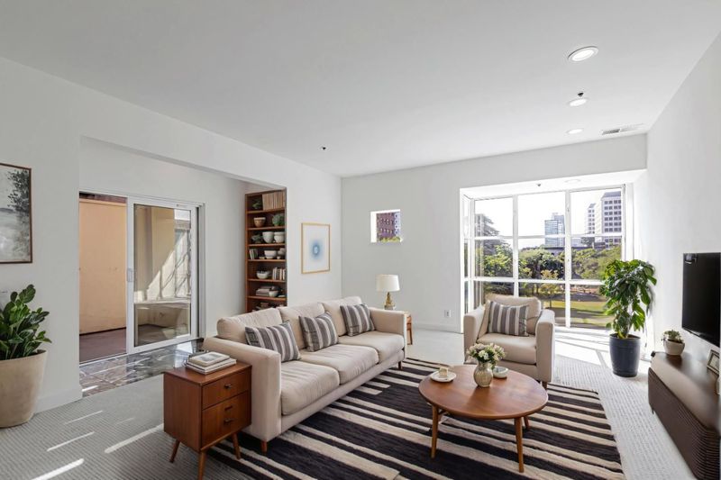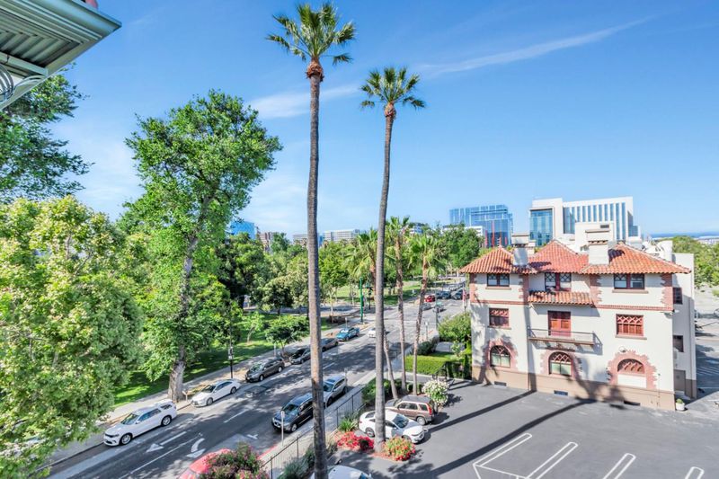 HUGE PRICE REDUCTION! Infrastructure updated, NO HOA litigation! Stunning top-floor 2BR + LARGE OFFICE or SECONDARY LIVING SPACE with 2 private patios, with sweeping views of downtown & lush St. James Park, like living in a treehouse! Bright & Airy with floor-to-ceiling windows throughout, 2 patios (LIVING ROOM AND OFFICE/DEN ), IN-UNIT WASHER/DRYER, and dual-pane windows on most windows. The spacious primary ensuite features a walk-in closet; the guest room enjoys built-ins, a Murphy bed - perfect as a guest room or office combo. Open living/dining area with tons of natural light. Central heat & A/C. Stylish updates throughout: new LVP and carpet flooring, fresh paint, quartz counters, sleek kitchen cabinets, stainless appliances, and an in-unit washer/dryer. TWO PARKING SPACES in a secured parking garage, EV charging station.. Prime location to restaurants, bars, San Pedro Square, VTA, Caltrain, and Tech companies with quick freeway access (280, 87, 101). Move-in ready!