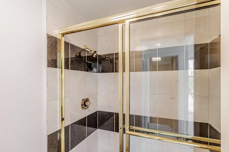 - Primary - Stall Shower(s), Shower over Tub - 1, Skylight, Stall Shower, Stone, Tile