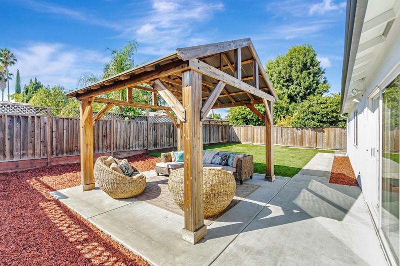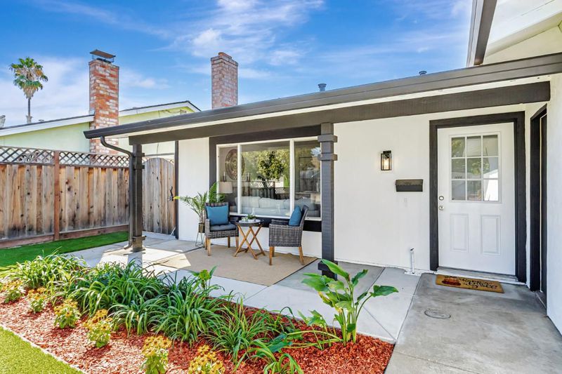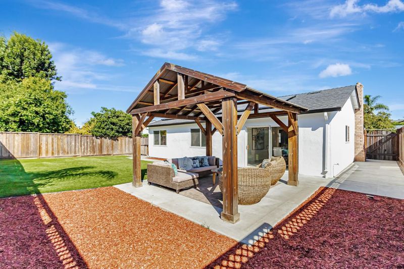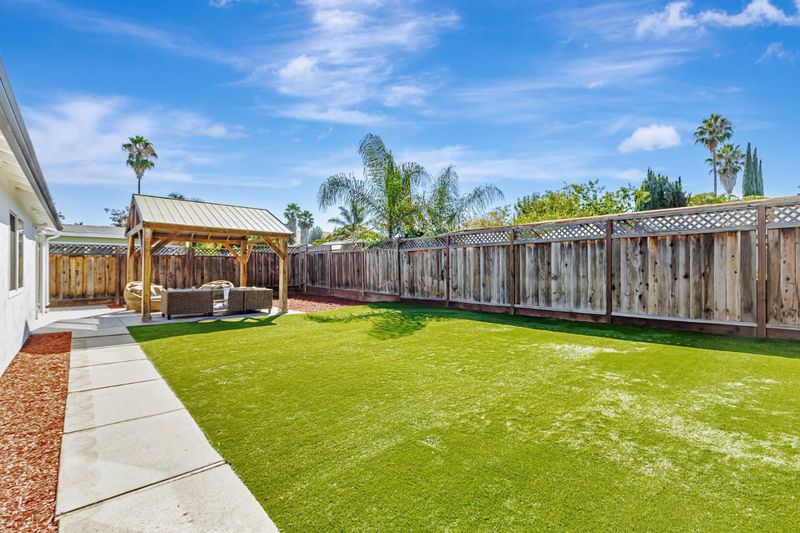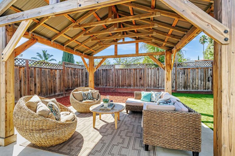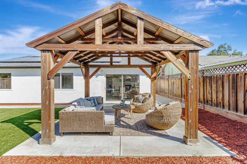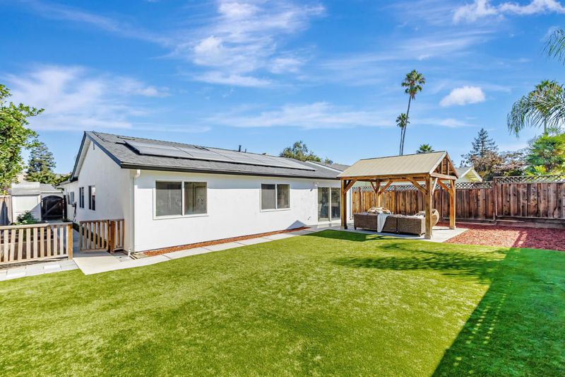 Cute as a button, this charming home is sure to impress! Step outside to pristine landscaping with high-end turf in both the front and backyard, a spacious gazebo perfect for summer BBQs, and a side yard featuring a strawberry garden, oversized planter boxes, and a convenient storage shed. The solar lease provides significant savings on electricity, making this home as efficient as it is beautiful. Inside, the bright and open floor plan offers 4 bedrooms and 1.5 bathrooms across 1,360 sq. ft. of living space. Enjoy new luxury laminate flooring throughout, complemented by fresh interior and exterior paint. The remodeled kitchen is a true highlight, complete with an apron sink, ample cabinetry with dual lazy Susans, a butcher block island with storage, and a new dishwasher. The tranquil living room features a cozy fireplace and oversized coat closet, while the updated bathrooms include decorative touches and a stylish pocket door. Ideally located near an elementary school, shopping centers, Kaiser Santa Teresa, and major freeways, this home offers both comfort and convenience. Dont miss your chance to make it yours!