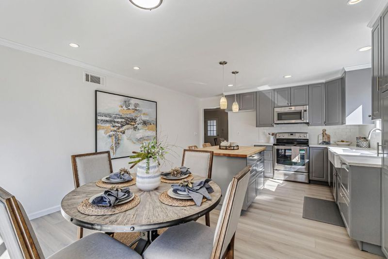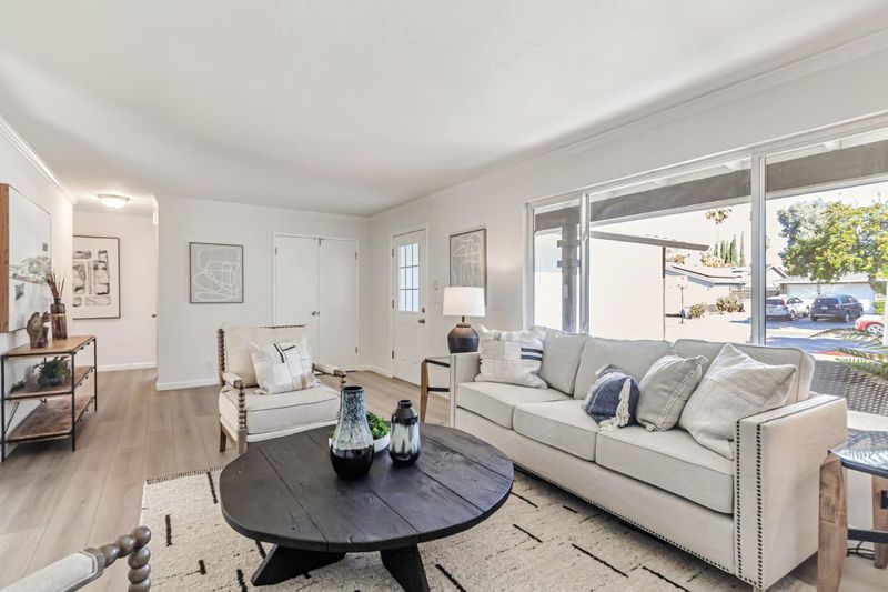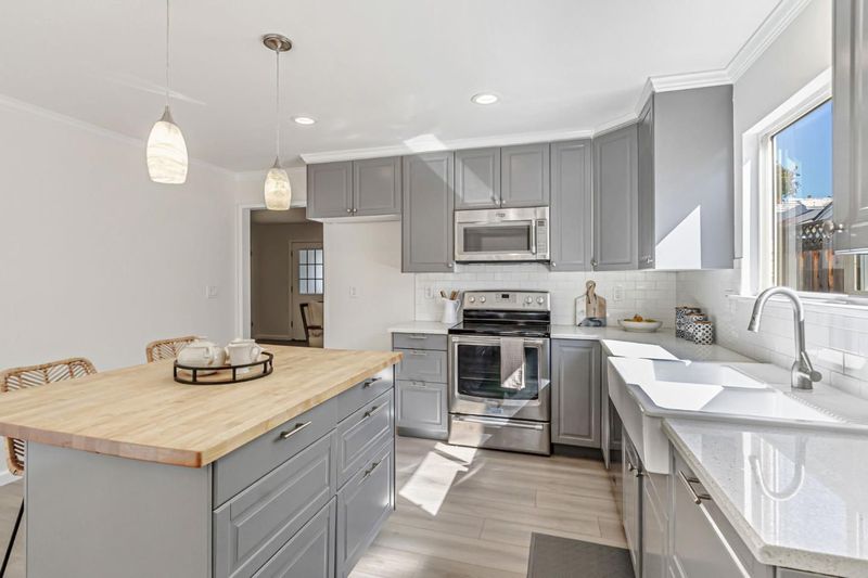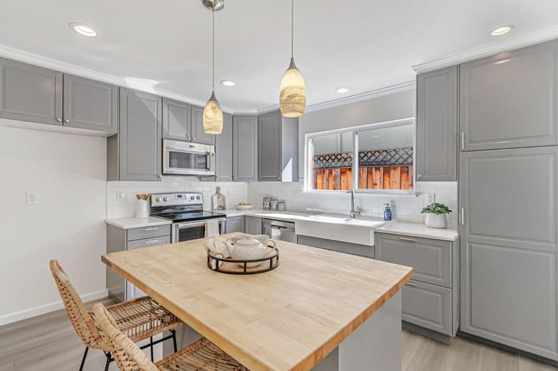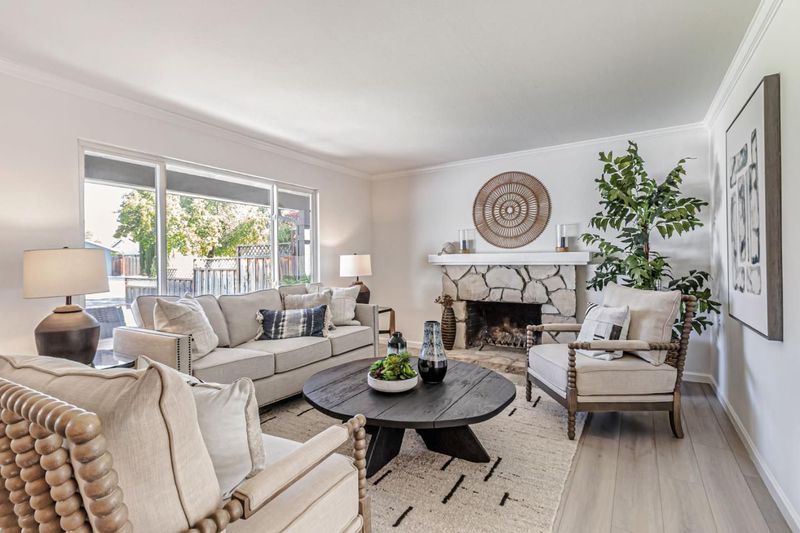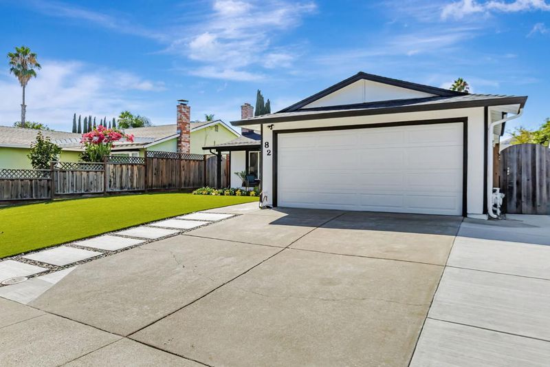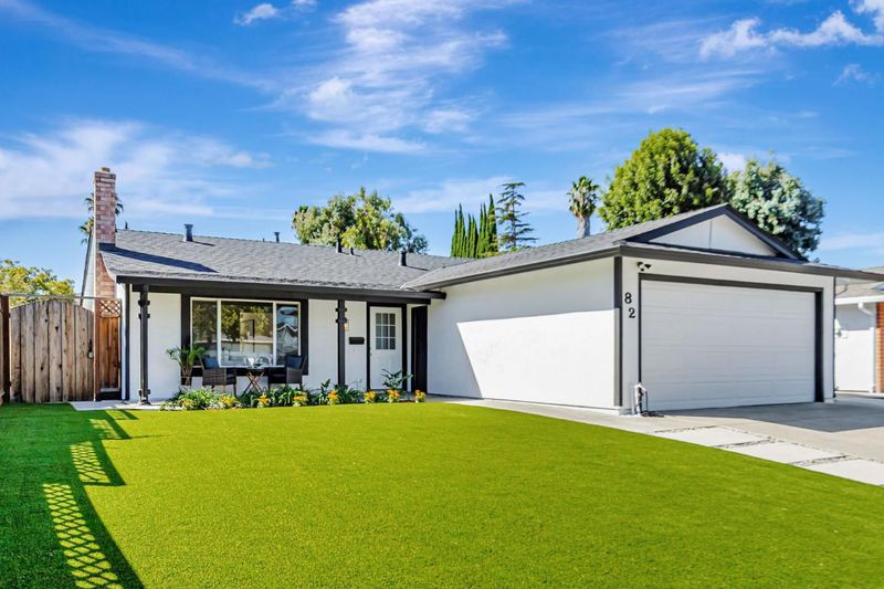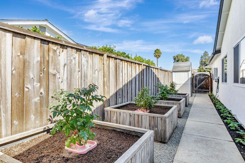 Cute as a button, this charming home is sure to impress! Step outside to pristine landscaping with high-end turf in both the front and backyard, a spacious gazebo perfect for summer BBQs, and a side yard featuring a strawberry garden, oversized planter boxes, and a convenient storage shed. The solar lease provides significant savings on electricity, making this home as efficient as it is beautiful. Inside, the bright and open floor plan offers 4 bedrooms and 1.5 bathrooms across 1,360 sq. ft. of living space. Enjoy new luxury laminate flooring throughout, complemented by fresh interior and exterior paint. The remodeled kitchen is a true highlight, complete with an apron sink, ample cabinetry with dual lazy Susans, a butcher block island with storage, and a new dishwasher. The tranquil living room features a cozy fireplace and oversized coat closet, while the updated bathrooms include decorative touches and a stylish pocket door. Ideally located near an elementary school, shopping centers, Kaiser Santa Teresa, and major freeways, this home offers both comfort and convenience. Dont miss your chance to make it yours!