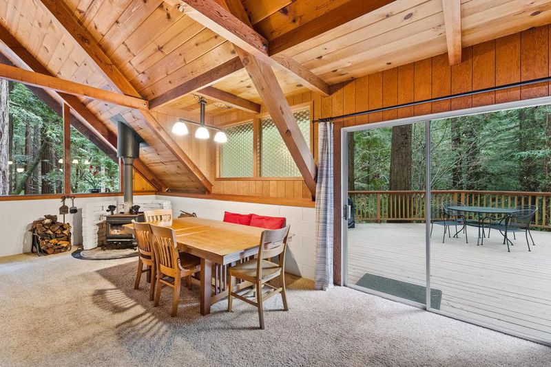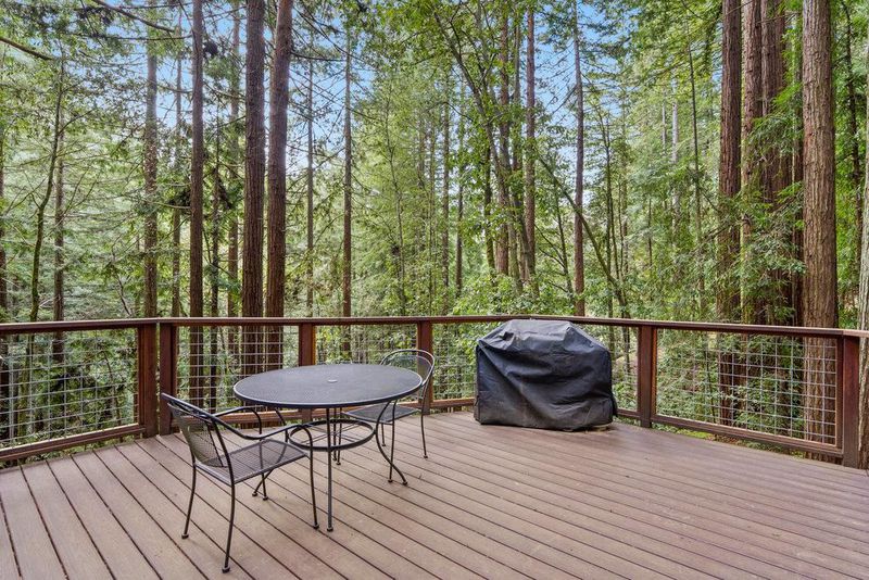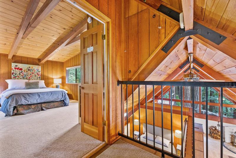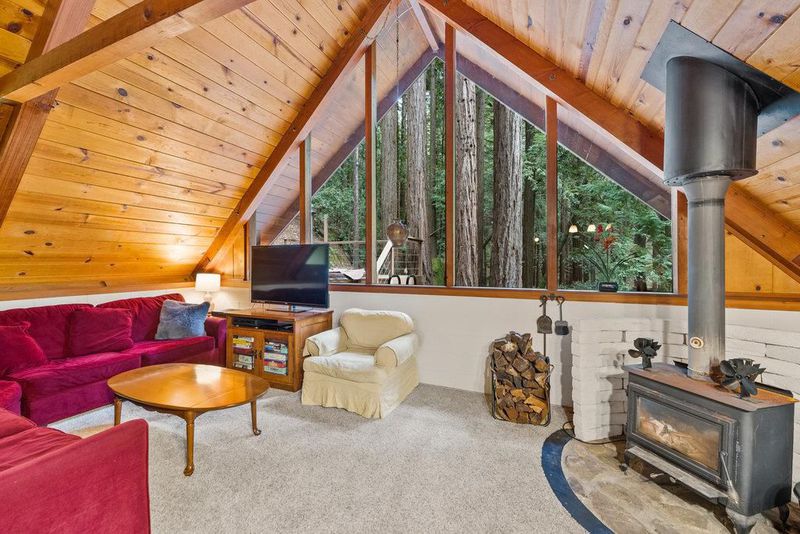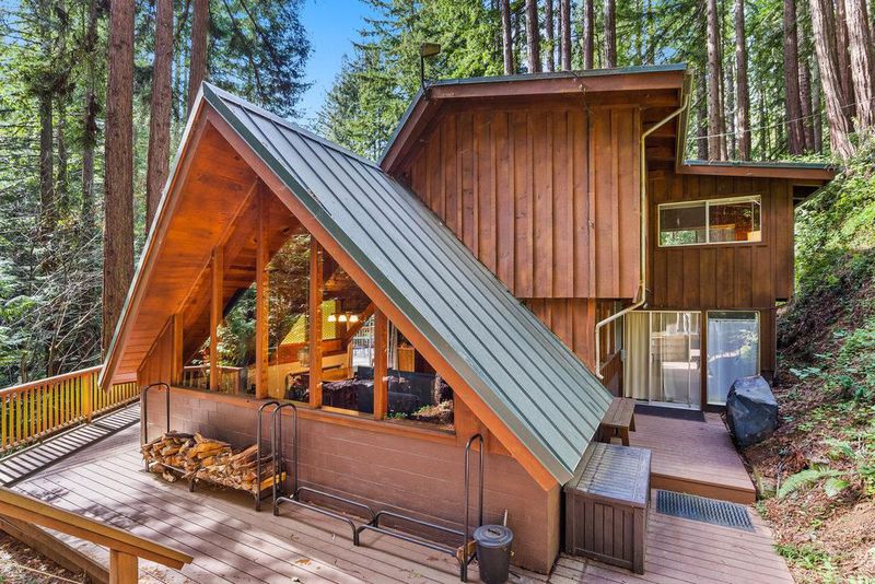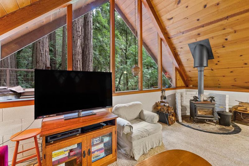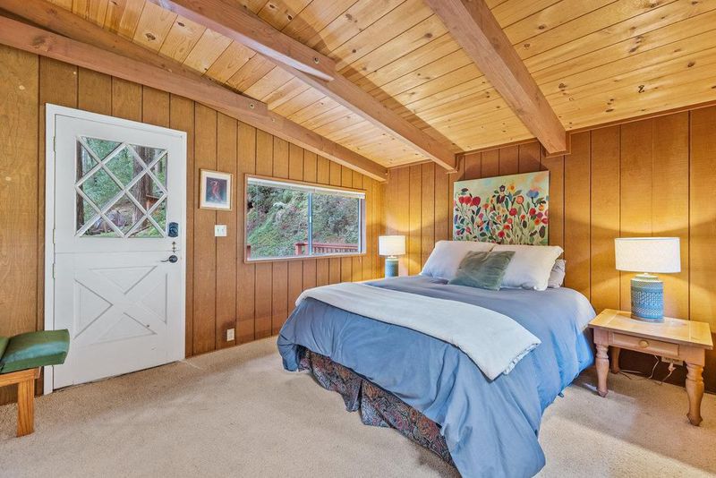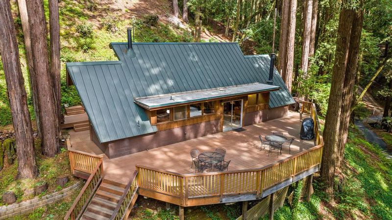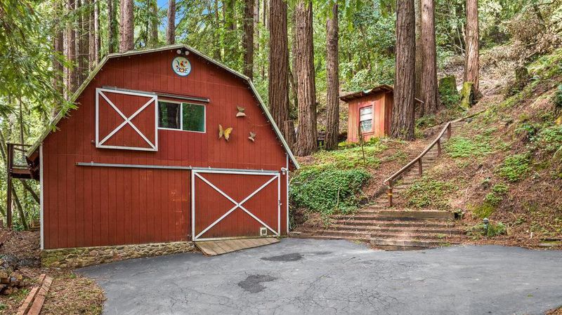 Tucked away in a magical, hidden canyon, this serene 9-acre retreat offers the perfect blend of privacy and natural beauty with newly installed Starlink. The main house features 3 beds, 2 baths with a studio above the barn! New interior barn doors just added! Just minutes from Corralitos Sausage, the Corralitos wine trail, and miles of scenic hiking and biking, this peaceful escape feels worlds away. Inside, the home exudes classic woodsy charm with high, open-beam ceilings and expansive picture windows that frame breathtaking views of the surrounding forest. Cozy nooks invite you to curl up with a book and a cup of coffee while the soothing sounds of the creek enhance the tranquility. Enjoy the expansive decks and outdoor living. Vacationers love this enchanting hideaway, as it has been a popular short-term rental. Enjoy a sun-drenched meadow, enchanting redwood fairy rings, and the ultimate in seclusion and serenity. A detached garage/workshop with a bonus space above completes this one-of-a-kind retreat.