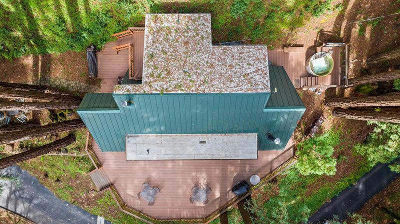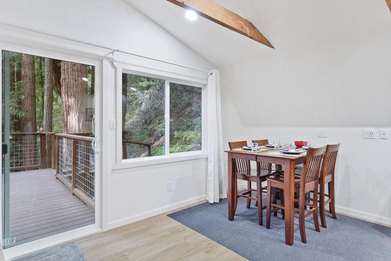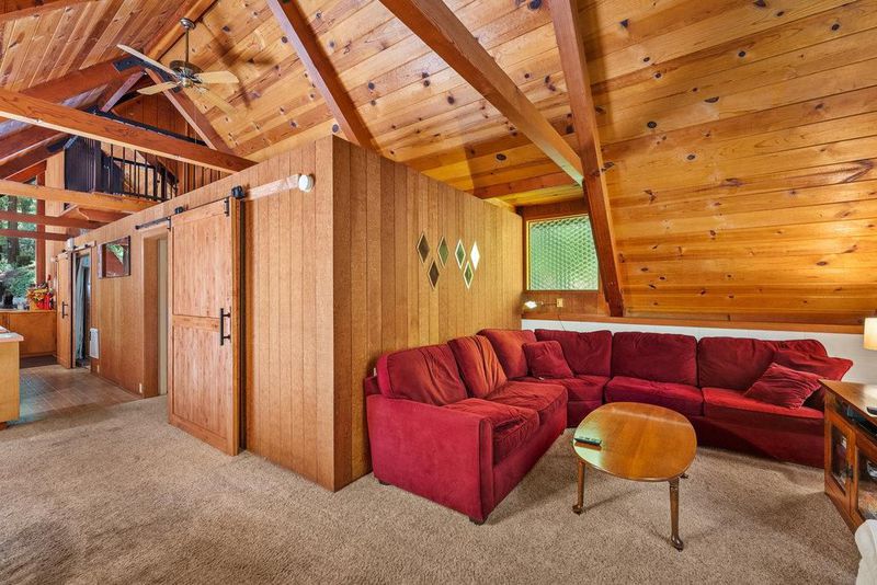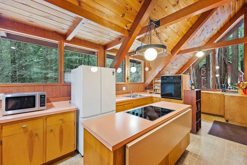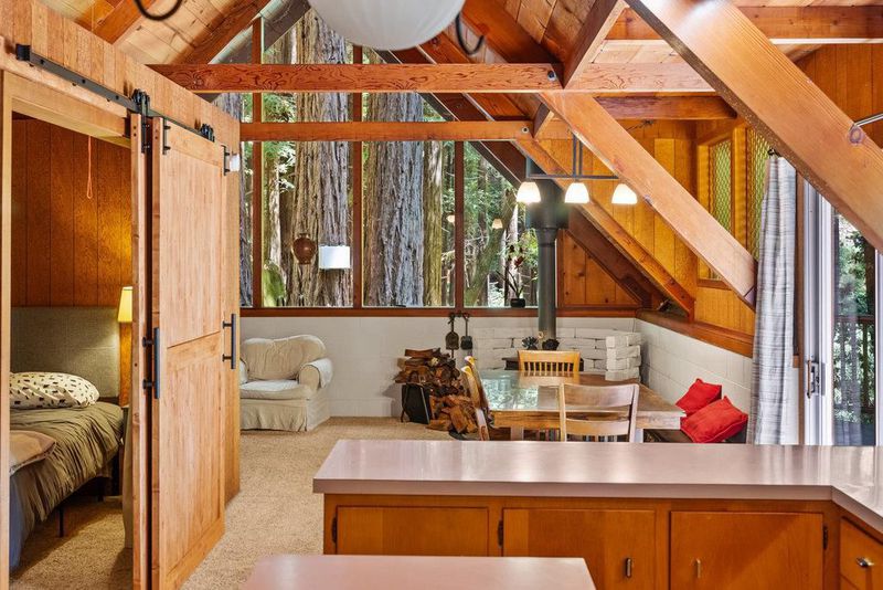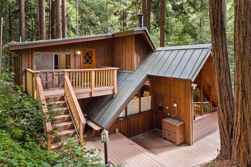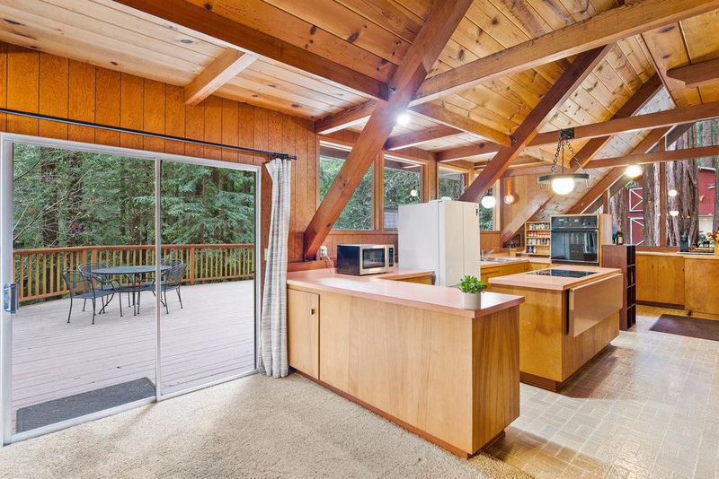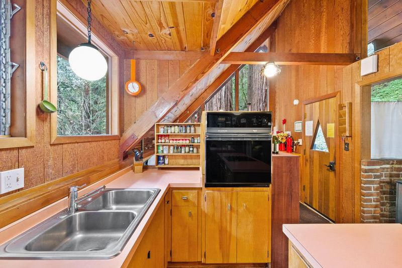 Tucked away in a magical, hidden canyon, this serene 9-acre retreat offers the perfect blend of privacy and natural beauty with newly installed Starlink. The main house features 3 beds, 2 baths with a studio above the barn! New interior barn doors just added! Just minutes from Corralitos Sausage, the Corralitos wine trail, and miles of scenic hiking and biking, this peaceful escape feels worlds away. Inside, the home exudes classic woodsy charm with high, open-beam ceilings and expansive picture windows that frame breathtaking views of the surrounding forest. Cozy nooks invite you to curl up with a book and a cup of coffee while the soothing sounds of the creek enhance the tranquility. Enjoy the expansive decks and outdoor living. Vacationers love this enchanting hideaway, as it has been a popular short-term rental. Enjoy a sun-drenched meadow, enchanting redwood fairy rings, and the ultimate in seclusion and serenity. A detached garage/workshop with a bonus space above completes this one-of-a-kind retreat.