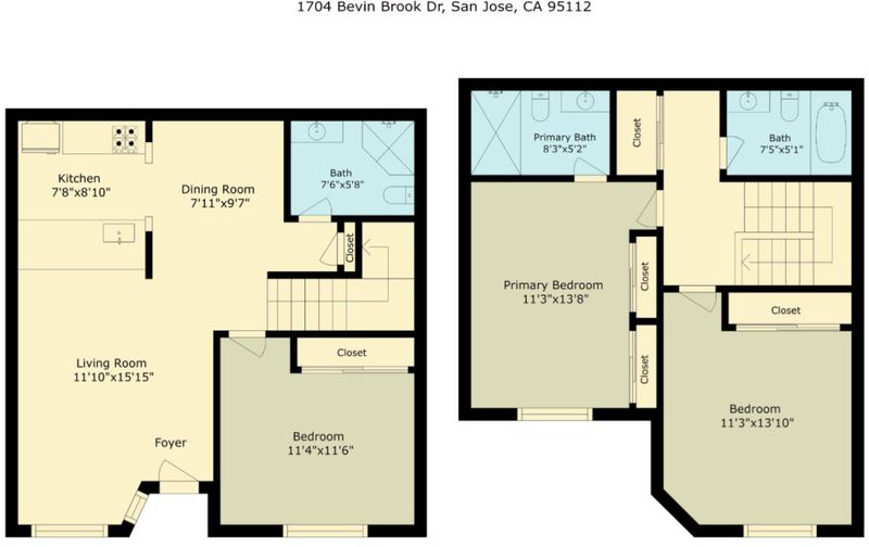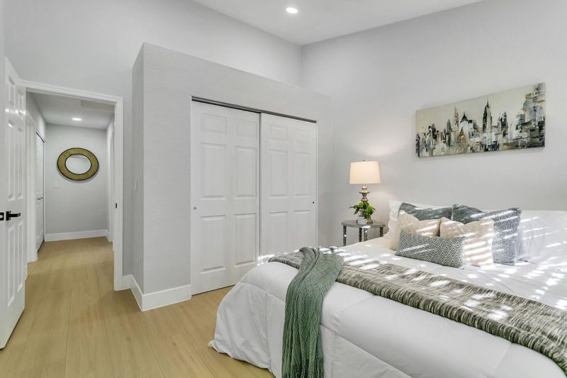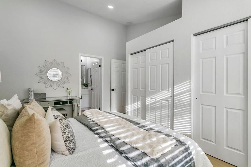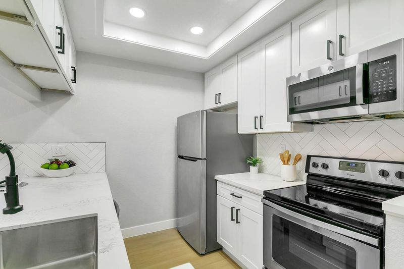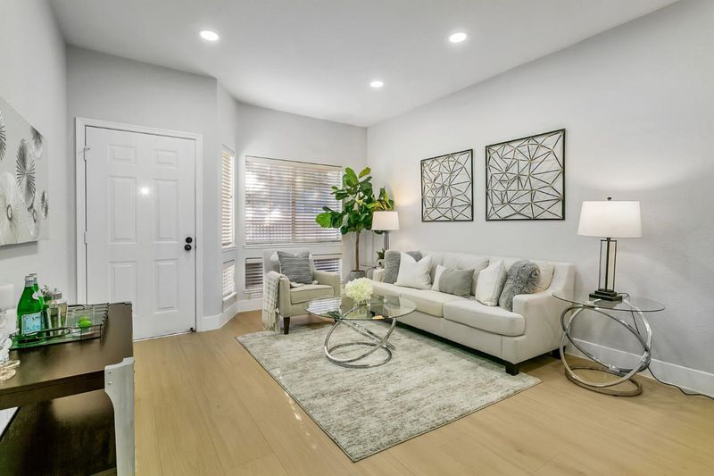 Modern 3 bedroom and 3 full bathroom townhouse has been gorgeously updated with all the modern amenities including an updated kitchen with quartz counter-tops, full tile back-splash, and newer stainless steel appliances. Bathrooms updated with new vanity, quartz counter-tops, newer toilets and fixtures. New interior paint, new recessed LED lighting, central heating and AC, new 15MM waterproof laminate wood flooring, laundry closet located on top floor, dual pane windows, and tile roof. Unique features include a bedroom and full bathroom on main floor, primary suite with a new walk in shower with quartz surround and glass enclosure and dual closets, detached garage, and a fenced-in low maintenance courtyard. Conveniently located near shops and restaurants and minutes away from highways 280 & 101. Walking distance to Kelley Park.