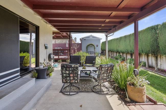 A L O H A !!! Welcome to this Beautiful & detailed Home with Island touches in the Gated Community of Ridgemark Golf & Country Club. The updated Kitchen is a Chef's Dream with updated Cabinetry, Granite Slab Counters-Backsplash & top-of-the-line smart appliances. The Skylight in the Kitchen creates a lot of light even on overcast days. The Family Room offers a cozy Brick Fireplace & plenty of room for your furnishings. Two Sliders make it convenient to access the front Courtyard & the Back Patio. The Dining Room can accommodate a large table & seat many for your Family Festivities. The Home setting is very private with some views of the San Benito Hills off to the South. The large land space offers areas to entertain in the front Courtyard or back covered patio, 2 large side yards for easy access for Utility Trailers or additional vehicles, 2 Sheds, & a spacious deck. You will see every yard of the outdoor space has been well thought out with spectacular foliage while remaining low maintenance. You will be amazed by the garage which can be a game room with the State of the Art finished flooring. In the garage a workshop or craft room w/ shelving & counters for the artist in your Family. Ring & Solar Anran (7 cameras) are installed and can be viewed from your AP. Lots of Parking!