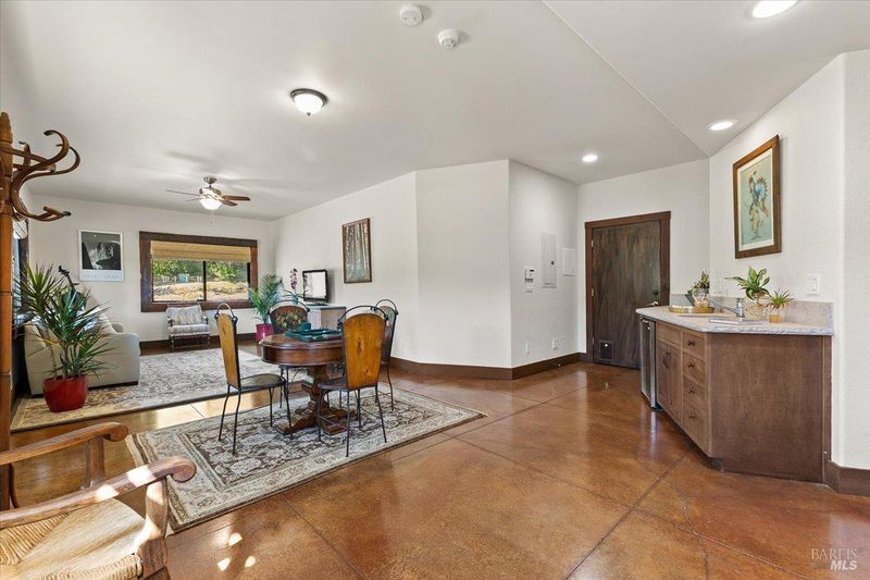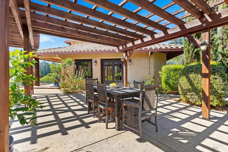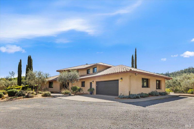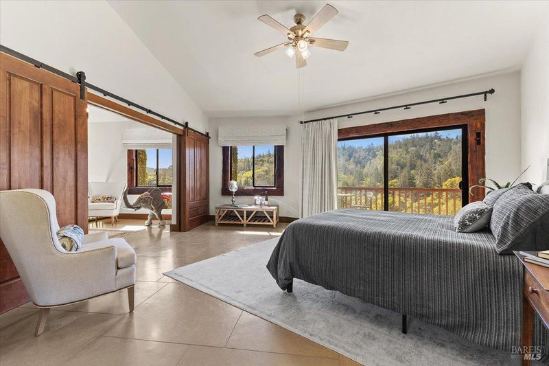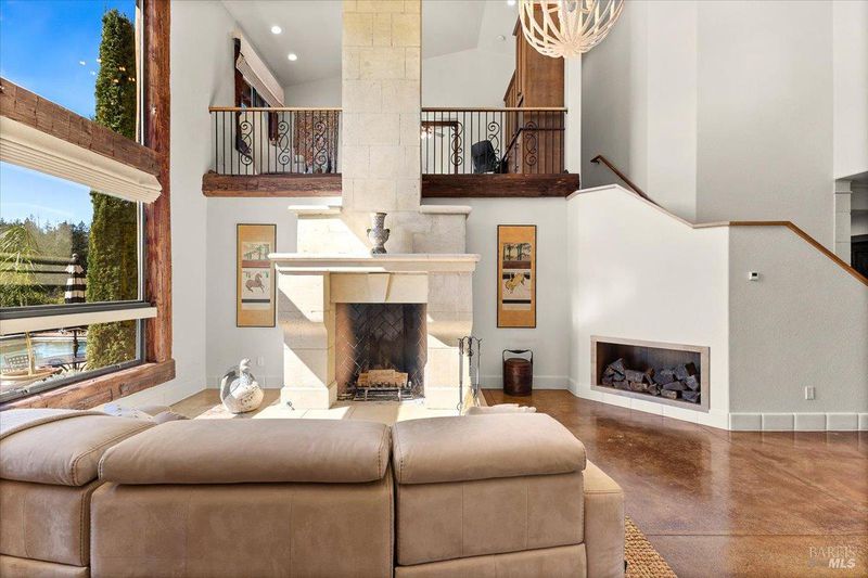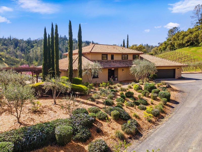 Nestled on 40 acres in the heart of Alexander Valley, this Wine Country Estate combines vineyard elegance with private serenity. Six acres of Cabernet vines frame the property, while heirloom-style hewn woodwork and stained concrete floors set a timeless, artisanal tone. The living room centers on a commanding two-story fireplace and floor-to-ceiling windows that overlook the 60-foot Pebble Tec pool and sweeping hillside-delivering dramatic, ever-changing views. On the main level, you'll find an inviting entertaining room with a bar, two bedrooms and two baths, a gourmet kitchen with soapstone countertops, stainless appliances, and a Viking range, plus a pantry and a generous dining area. The upper level is home to the primary suite with an ensuite spa-like bath and a private office/sitting area. French doors open to an entertainer's outdoor experience where you can dine and sip wine beneath a star filled sky. Outside, olive and fruit trees, raised garden beds, and a chicken niche complete this rural oasis, privately positioned behind the Marietta Winery for ample seclusion. Just minutes from Highway 101, the quaint town of Geyserville, and the chic destination of Healdsburg.