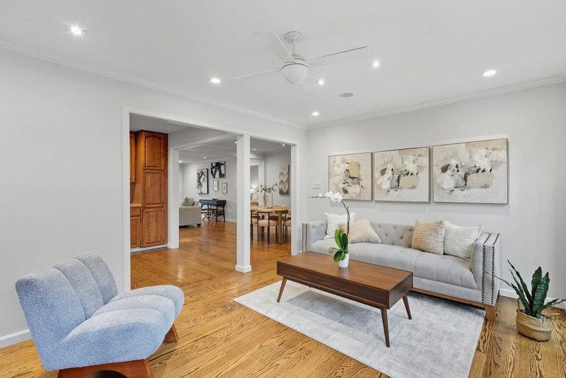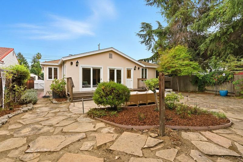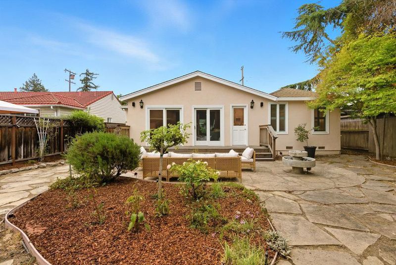 An English garden and charming front porch welcome you to this 2-bedroom, 2-bathroom home. With over 1400 square feet, a generous living and family room, this residence offers ample room for comfortable living. The primary suite is tucked away overlooking the western facing backyard and the separate family room offers a clear view through large Andersen doors opening onto the sunny back yard. The previously updated kitchen is equipped with a gas range, dishwasher, microwave and refrigerator, making meal preparation a breeze. Flooring includes updated original hardwood providing a blend of warmth and functionality, while you entertain all winter beside two cozy fireplaces. Additional features such as central AC and Andersen dual pane windows throughout offer year-round comfort. The laundry area located in the one car garage add convenience to your daily routine. Located within the Redwood City Elementary School District, this home is set on a approximately a 5,400 square foot lot and has an extended driveway for 2 car parking.