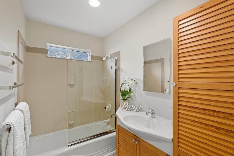 - Full on Ground Floor, Shower over Tub - 1, Skylight, Stall Shower, Tile, Tub, Updated Bath