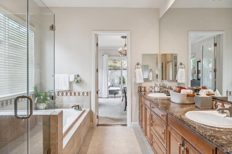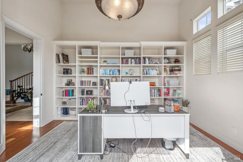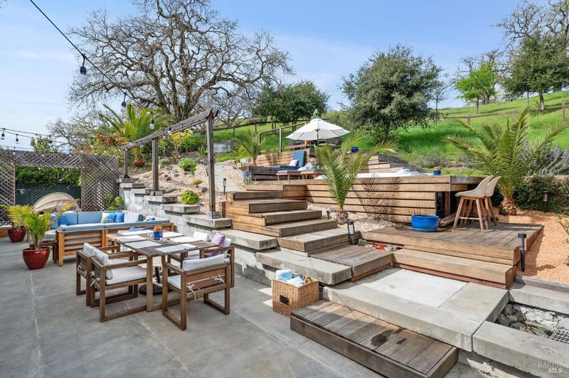 Welcome to a home where elegance meets comfort. With impressive curb appeal, soaring ceilings, and a graceful staircase, it makes a striking first impression. The open floor plan connects the living spaces seamlessly, while the chef's kitchenwith granite counters, central island, and built-in deskoffers the perfect hub for cooking, gathering, or casual meals. Multiple home office options on separate floors suit today's work-from-home lifestyle, and built-ins throughout add both function and style. With 5 bedrooms and 3 full baths, including a luxurious primary suite, there's space for everyone. Outside, the landscaped backyard feels like a private retreat, complete with hot tub, patios, and decks for entertaining or unwinding. Backing to open space with oak-studded hillside views, this home balances grand scale living with everyday ease.