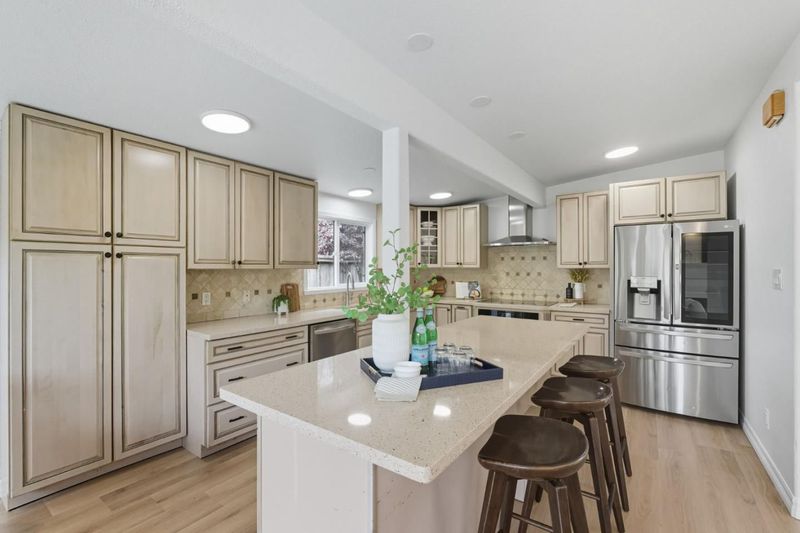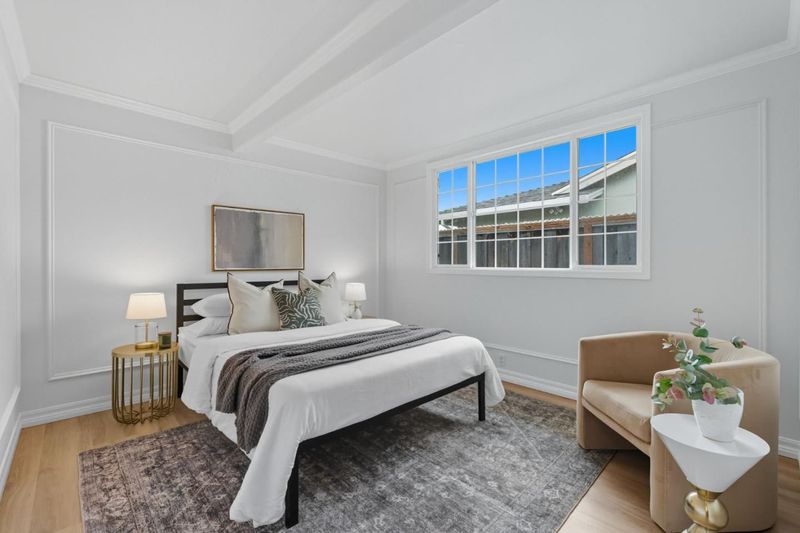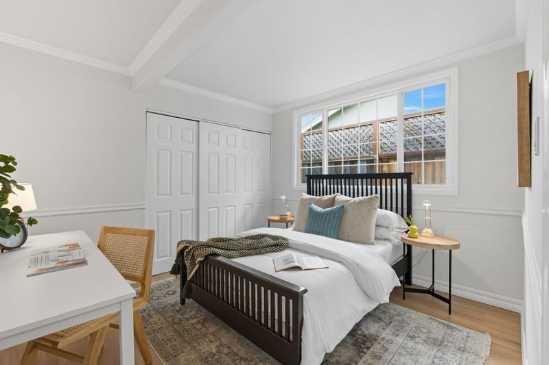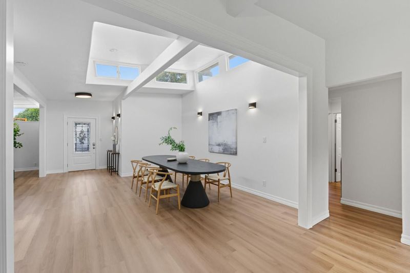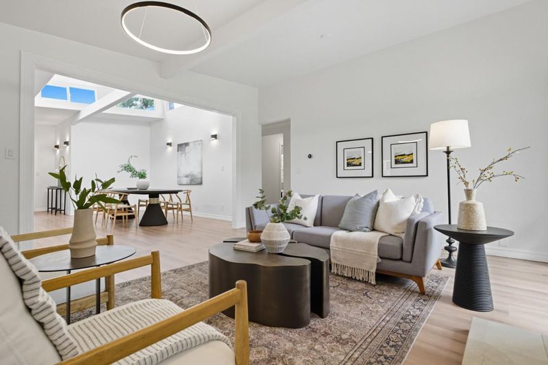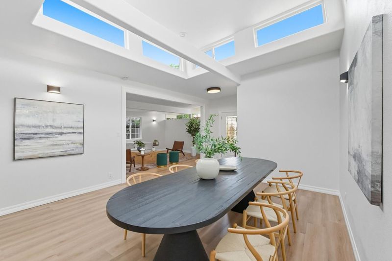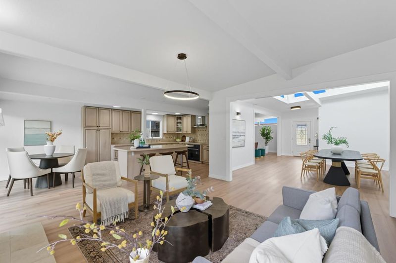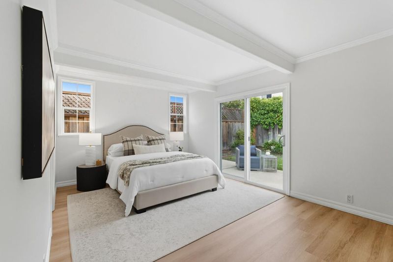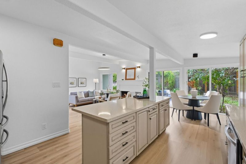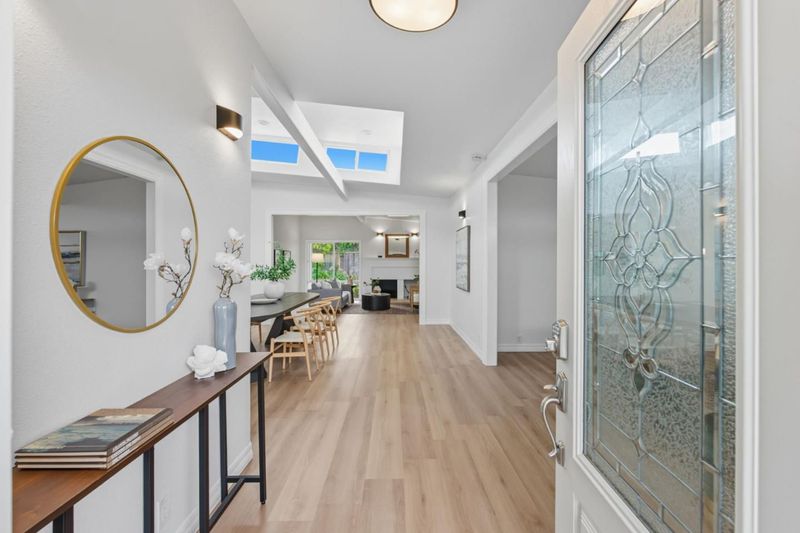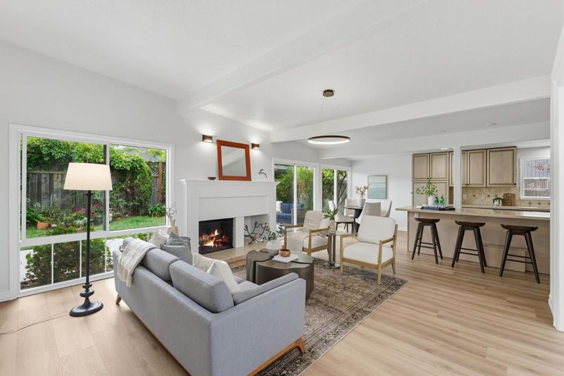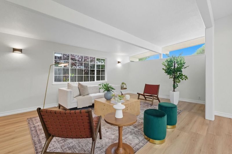 Find yourself in a newly updated and previously expanded 4 bedroom Eichler gleaming with natural light, an enclosed atrium, heightened sloped ceiling and wraparound roof line windows. Single floor living partnered with a relatively open layout, provide 3 distinct and welcoming gathering spaces - an opened up formal living room, dining/multipurpose room and family room. The sized up kitchen includes stainless steel appliances, plentiful storage and a large island with built-in seating, as well as an eat-in dining area that opens up to the backyard for desirable indoor/outdoor living. Choice flooring, select light fixtures and radiant heating complement the home, simplifying future interior design/art options. A spacious primary, inclusive of en-suite and private backyard access along with 3 well sized bedrooms, full bath, sizable quad panel storage and laundry. Backyard has room to play, garden, entertain and 2 car garage has added storage, separate access to backyard and Tesla EV charger. Roof is 3.5 years old. No neighbors across and Bay views provides privacy, as well as immediate access to nearby Bridgeview Park and Bay Trail. Foster City has acclaimed schools, plentiful community resources, beaches, parks, greenways, lagoons and unending shopping and amenities.