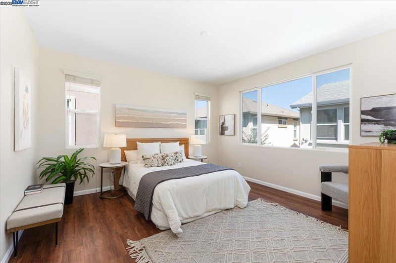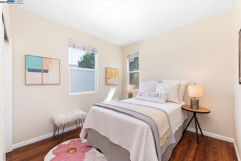 Do not miss this move-in ready, south-west facing home on a prime corner lot in Elmhurst. From the moment you arrive, you’ll appreciate the welcoming community with a park/playground next door and a covered front porch perfect for relaxing. Open the door into the spacious family room filled with natural light and boasting fresh paint, upgraded baseboards, and elegant tile flooring. The kitchen features stainless steel appliances less than a year old, abundant cabinetry, a backyard view, and all appliances are included. Sliding glass doors open to the private, low-maintenance yard with three mature fruit trees — avocado, orange, and lemon — extending seamless indoor–outdoor living. Upstairs, a versatile landing with built-in storage leads to the primary suite with dual vanity sinks, a walk-in shower, spa-like soaking tub, and a sprawling walk-in closet. A convenient upstairs laundry room includes a washer and dryer less than a year old. Recent upgrades include a new water heater installed last month and a new HVAC system installed in 2020. Perfectly located, this home offers easy access to parks, greenbelts, and Elmhurst Lyons Field, with BART, I-580/I-880, schools, shopping, and dining along International Boulevard being just minutes away. Make this Elmhurst gem yours today!