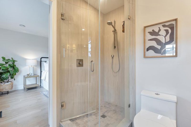 - Double Sinks, Dual Flush Toilet, Half on Ground Floor, Primary - Stall Shower(s), Shower and Tub, Stone, Tile, Updated Bath