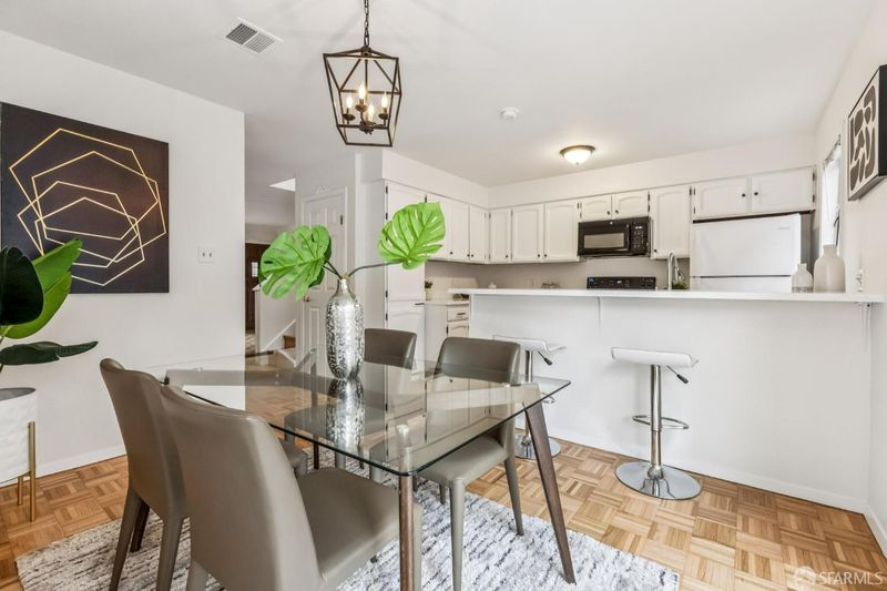 Charming two-story townhouse situated at the rear of the building. This bright end-unit has a huge wraparound outdoor patio, perfect for indoor/outdoor living. The main level has beautiful parquet wood floors throughout, living room w/ wood-burning fireplace, updated kitchen with quartz counters, breakfast bar for casual dining and separate dining area. Upstairs are two bright bedrooms, both with walk-in closets, two bathrooms and laundry. 2 parking spots & storage in garage. Prime Burlingame location near Broadway & Burlingame Ave. conveniences, Caltrain, SFO and top-rated schools.