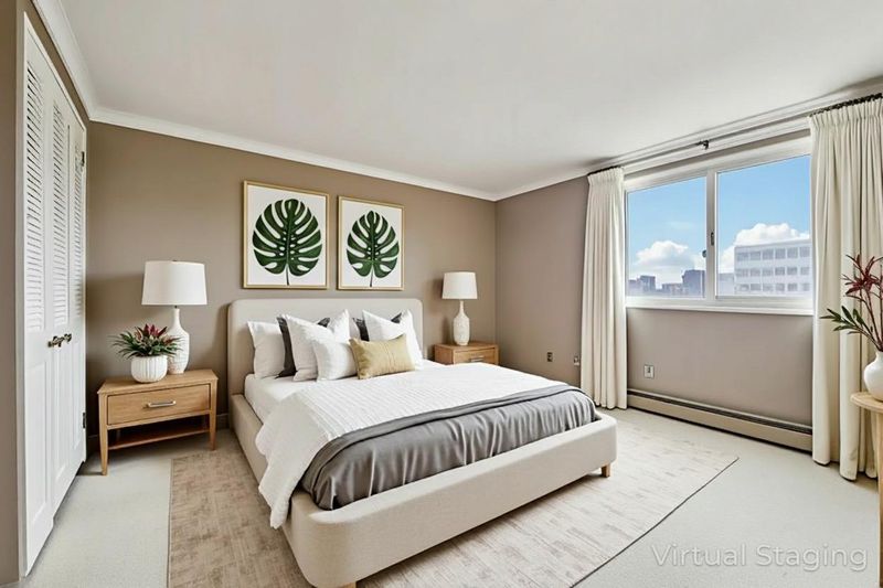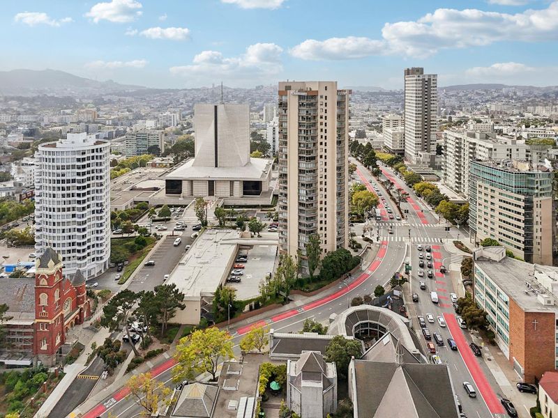 Live above it all at 1200 Gough St #14D, a beautifully appointed 1-bedroom, 1-bathroom condo offering approximately 900 sq ft of bright, spacious living. Located on the 14th floor, this home features panoramic views from a wrap-around balcony, including the San Francisco skyline, the bay, St. Marys Cathedral, and City Hall. Enjoy stunning sunrises and sunsets from your private outdoor space, with floor-to-ceiling windows that flood the interior with natural light. The layout includes a large living and dining area, a functional kitchen, a generously sized bedroom with ample closet space, and a well-maintained bathroom. A built-in Murphy bed in the dining area provides flexible space for guests or a home office. Additional highlights include a large private storage unit, assigned parking, and guest parking. The building offers a 24/7 staffed front desk, secure entry, elevator access, and professional management. Located in a Walkers Paradise with a Walk Score of 98, you're just steps from Japantown, Hayes Valley, Civic Center, transit, dining, and culture. 1200 Gough St #14D is the perfect blend of city living, convenience, and breathtaking views.