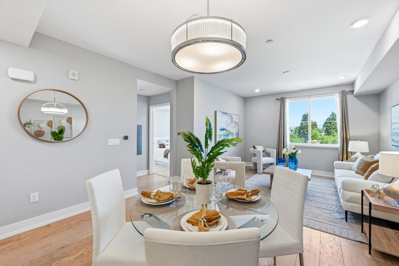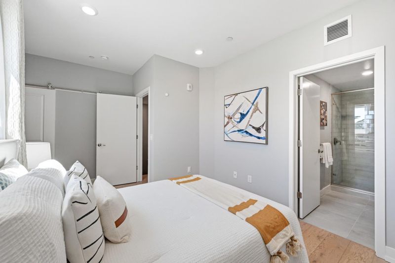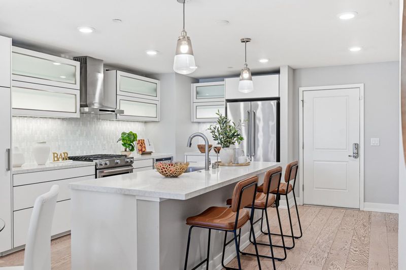 This sophisticated 7-year-new top-floor luxury home offers a rare 3-bed, 3-bath layout across 1,747 sq. ft. of premium space. The living room and every bedroom feature expansive views, filling the home with light. The interior boasts elegant Oak flooring, recessed lighting, five custom-designed closets, and over $60,000 in premium builder upgrades. Showcasing world-class German craftsmanship, the home features Bauformat cabinetry in the kitchen and all baths. The sleek kitchen is equipped with high-end KitchenAid appliances, motorized bifold lift cabinets, push-to-open/soft-close drawers, and an under-sink water filtration system. Modern convenience is built-in with Nest thermostats on each floor, a laundry area with a leak detection system, and a community water softener. Each spacious bedroom is paired with a full bath, providing an ideal configuration for privacy or a home office. Residents enjoy secure access, a fitness center, and a lush courtyard. Perfectly situated in the heart of Silicon Valley near Nvidia, Apple, and Google, you are steps from Santa Clara University and the Farmers Market. With Santana Row just minutes away, this turn-key home combines high-end design with an unbeatable location. An exceptional top-floor opportunitydo not miss it!