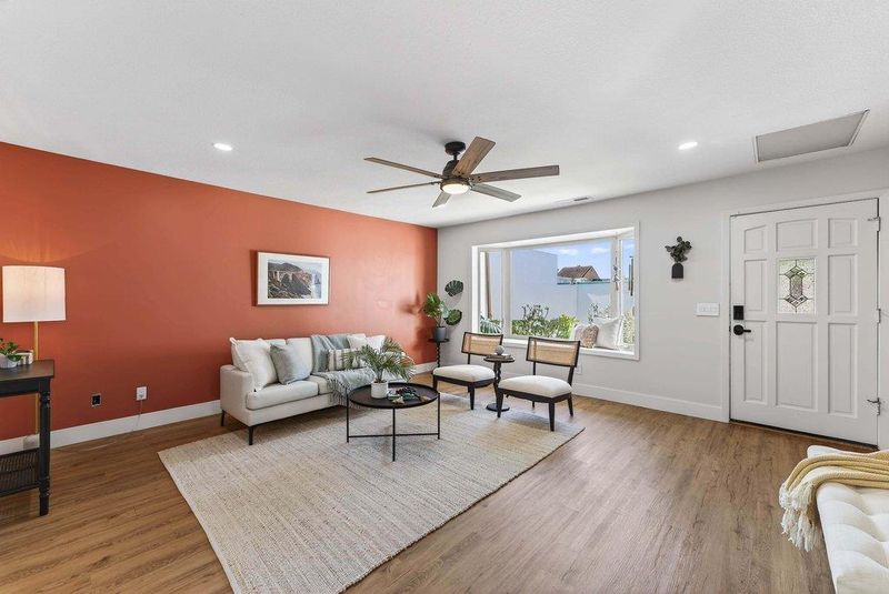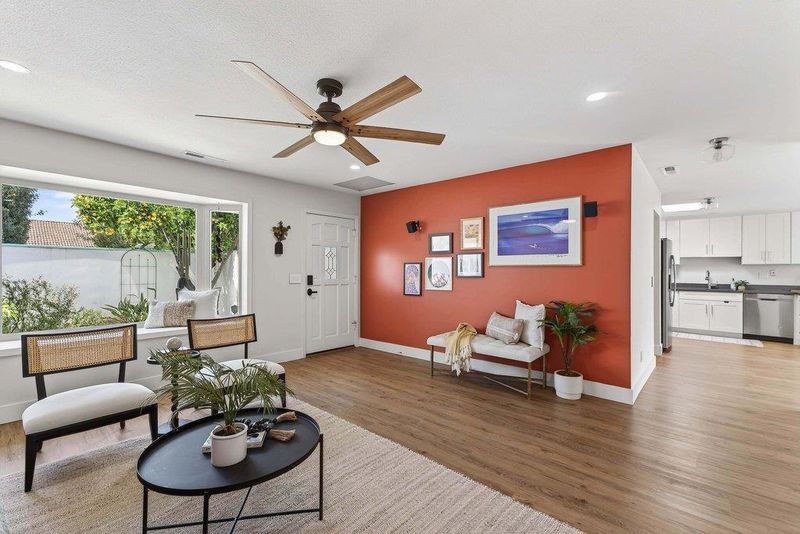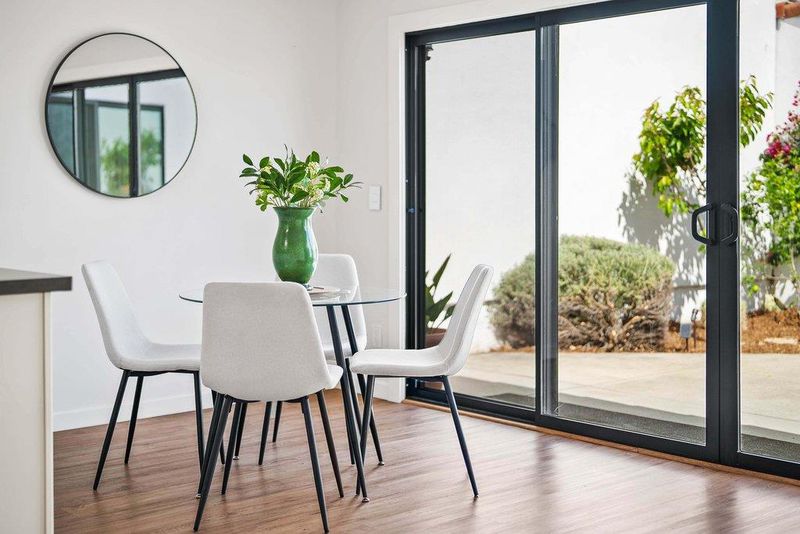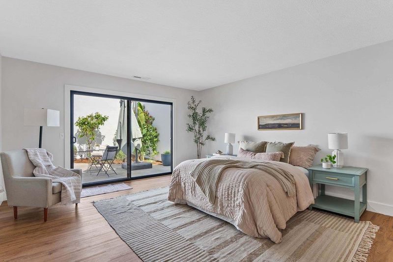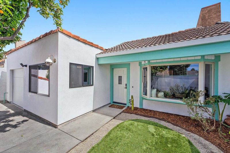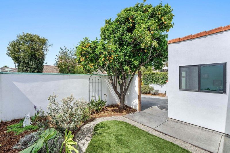 On a quiet cul-de-sac in Santa Cruz's sought-after Lower Westside, this Spanish-style cottage offers a relaxed coastal lifestyle. Set behind private courtyards, the home features bright living spaces and seamless indoor-outdoor flow. A 13-foot wall of sliding glass opens to the courtyard, perfect for gatherings or quiet mornings. Thoughtfully updated, the home includes smooth-finish walls, solid wood baseboards, and LVP flooring throughout. The 2020-renovated kitchen is bright and functional, while a professionally added third bedroom offers flexibility for guests, family, or a home office. Additional upgrades include a laundry room, updated electrical with EV capability, a new water heater (2024), and a new ASC membrane roof (2026), plus fresh Santa Barbara finish stucco. Outside, lemon and orange trees, lavender, manzanita, and monstera create a lush, private setting with multiple courtyards for relaxing. Just minutes from Cat & Cloud, New Leaf, Humble Sea, the Westside Farmers Market, West Cliff, Natural Bridges, and Wilder Ranchthis home blends privacy, thoughtful updates, and convenience.