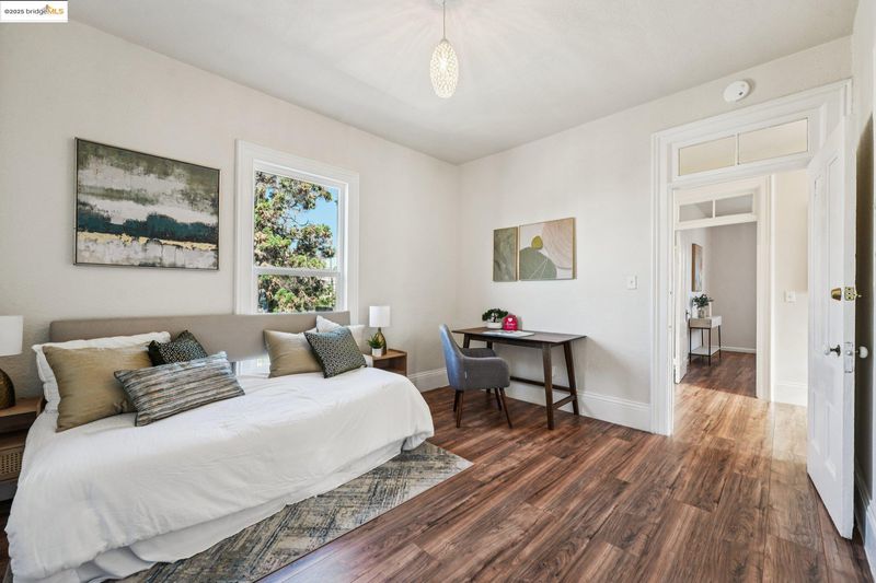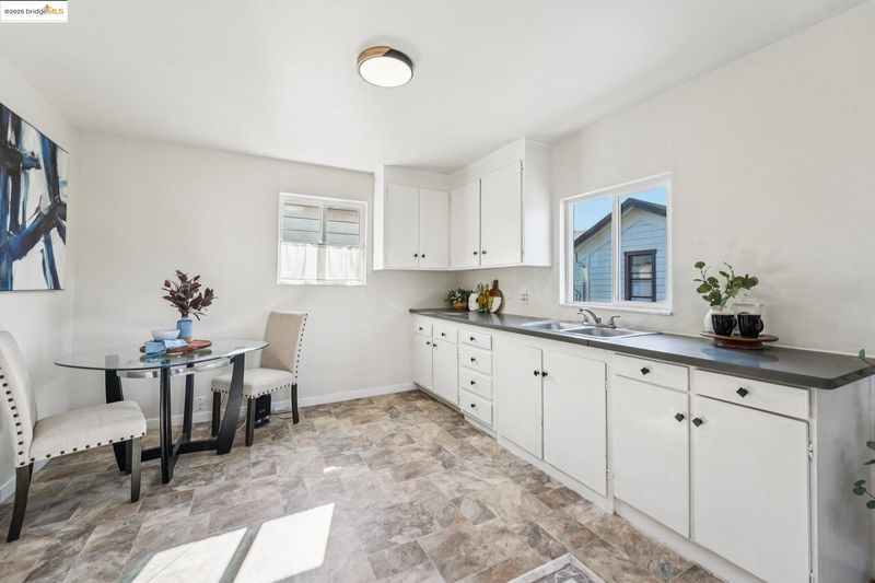 Discover your new home in this beautiful four-bedroom, two-bathroom Victorian retreat, perfectly situated in East Lake, with quick access to the serene shores of Lake Merritt and major transportation routes. Step inside and feel the warmth of its history, with original details lovingly preserved. The flexible floor plan provides endless possibilities, including a dedicated upper level complete with a second kitchen. This unique setup is ideal for multi-generational living, a potential Airbnb rental, or a private suite. The large detached two-car garage not only offers ample space for vehicles and storage but also presents a prime opportunity to build an ADU above. This home is a rare find, offering a unique opportunity to own a piece of East Lake's storied past with boundless potential.