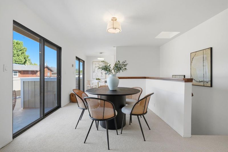 Located in the desirable Barron Park neighborhood, this light-filled second-floor end-unit condo with only one common wall offers a rare townhouse-like feel within a quaint and tranquil development. The open floor plan features a spacious living room with a wood-burning fireplace and sliding glass doors from both the living area and kitchen that open to an oversized balcony. The bright eat-in kitchen includes stainless steel appliances and tile flooring, while new carpet adds a fresh, move-in-ready touch throughout. Additional highlights include in-unit laundry, a skylit bathroom with shower over tub, dual-pane windows, a one-car attached garage with storage, and an additional dedicated parking space conveniently located next to the unit. Ideally situated near top-rated Palo Alto schools (Juana Briones Elementary, Fletcher Middle, and Gunn High) parks and shopping, this home offers an exceptional opportunity in a highly sought-after community.