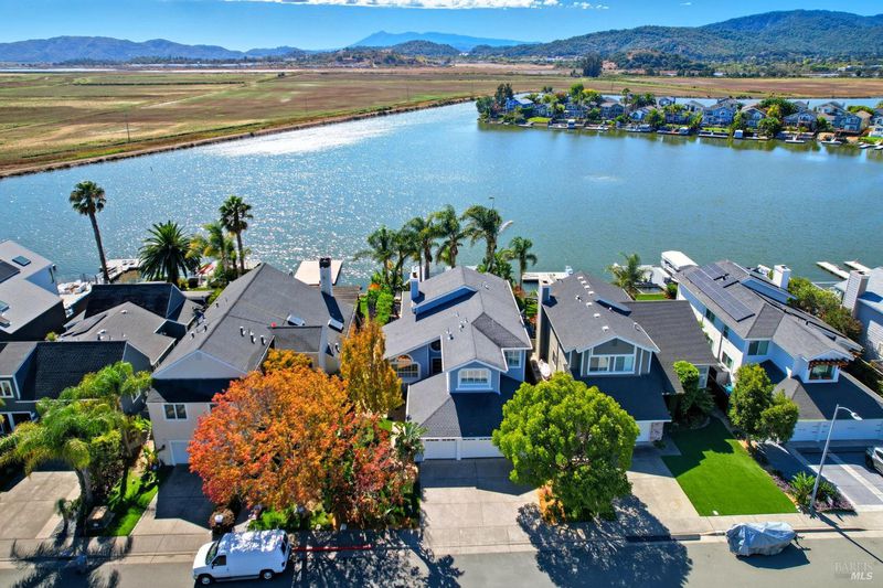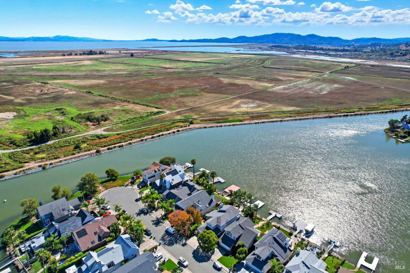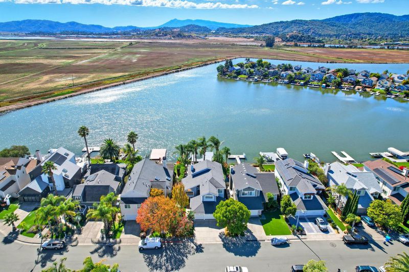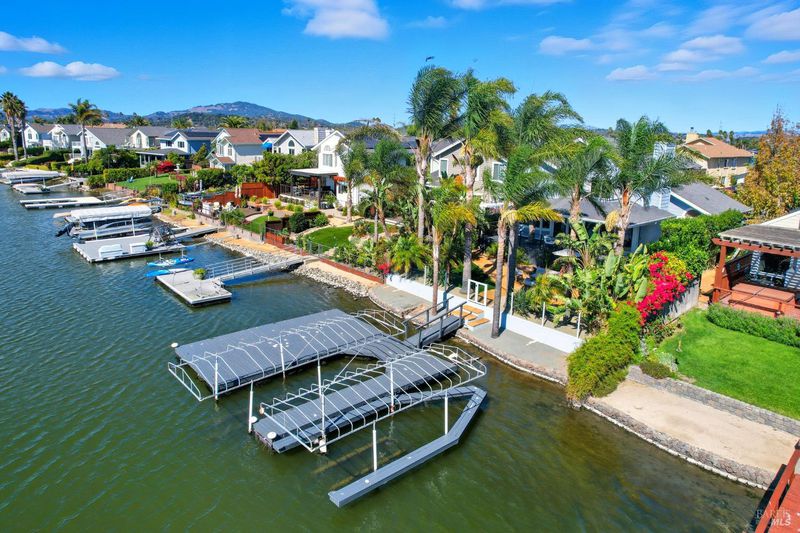 A once in a lifetime opportunity to own this exceptional Bel Marin Keys waterfront property. Gorgeous setting with amazing lagoon and Mt Tam views. Expansive open concept great room with soaring ceilings, big windows for natural light and a covered deck. Professional gourmet kitchen with an enormous island, a pantry, a 48 gas range and a huge built-in refrigerator. This resort style home is truly an entertainer's dream house. Luxurious primary suite with high vaulted ceilings, a view deck, a walk-in closet, double showers and a soaking tub. The sprawling dual slip boat dock would be great for larger parties and all of your water sport toys. Loverly lush grounds with mature trees, a flagstone patio and walkways, which would be amazing for outdoor fun and entertaining. 3 car garage with an attic storage area and lots of cabinets.