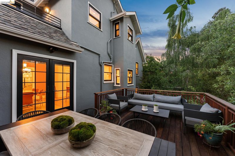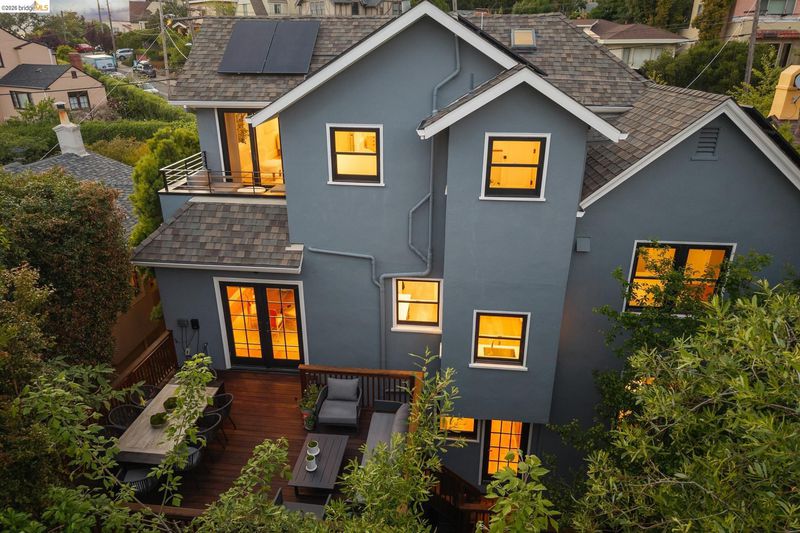 Extensively updated 5 bedroom, 3.5 bath home with a 93 Walk Score, where quality and ease are immediately felt. Hardwood floors extend throughout, bringing warmth and quiet continuity. Electrical and plumbing have been updated, solar panels add efficiency, and double pane windows throughout the home. The layout is easy and livable. Three bedrooms upstairs, including a primary suite with a generous closet and en suite bathroom. High ceilings, and living spaces that open naturally to a deck off the main level, creating an easy indoor outdoor rhythm. An attached garage adds convenience. On the lower level, a separate au pair or guest space offers flexibility for extended family, a nanny, or a more private retreat. Thoughtful bonus spaces and ample storage are integrated throughout, supporting the way the home functions day to day without compromise. The grounds are mature and composed, with hardscaping and established landscaping that create a sense of privacy. And then, something rare. A creek runs through the backyard, crossed by two bridges, bringing a quiet sense of nature to the property. Set within a close knit neighborhood where neighbors know one another, this is a home that feels both refined and deeply comfortable. 10/10 HES Beso Certified