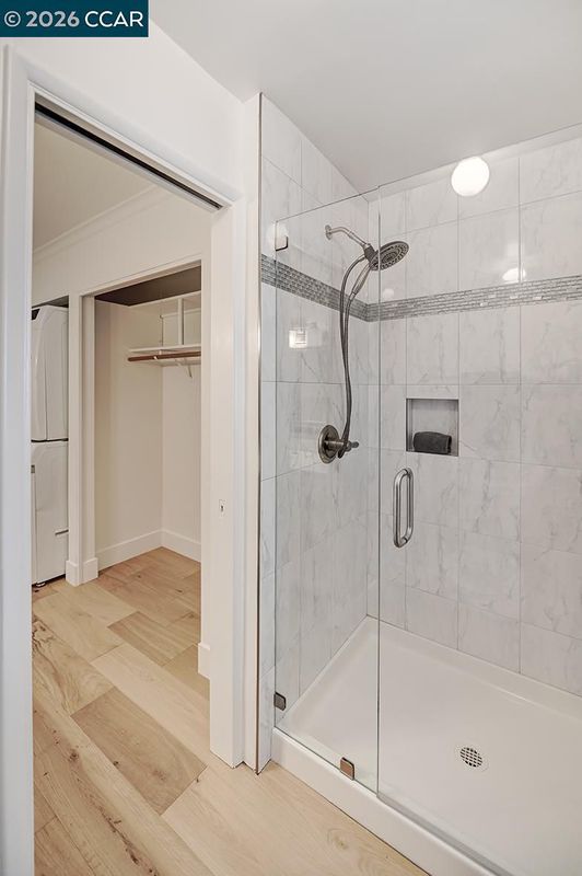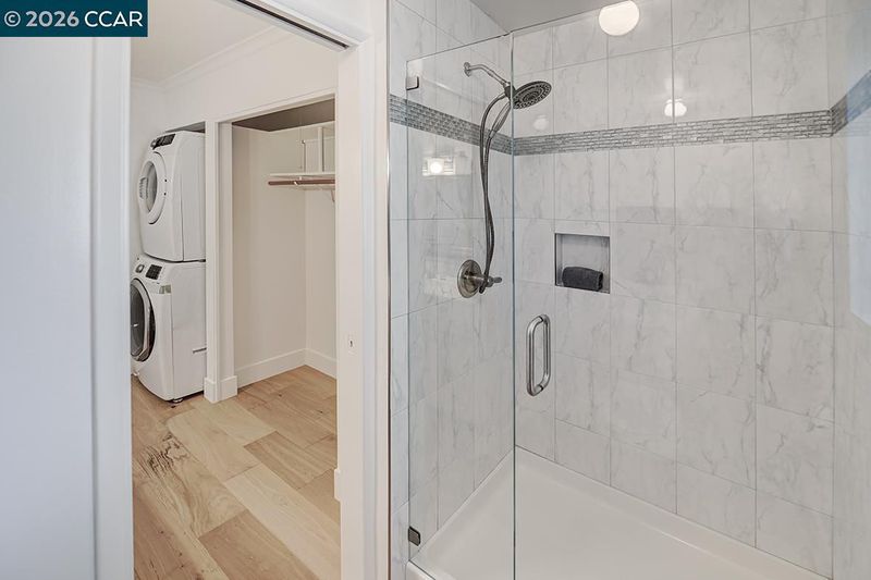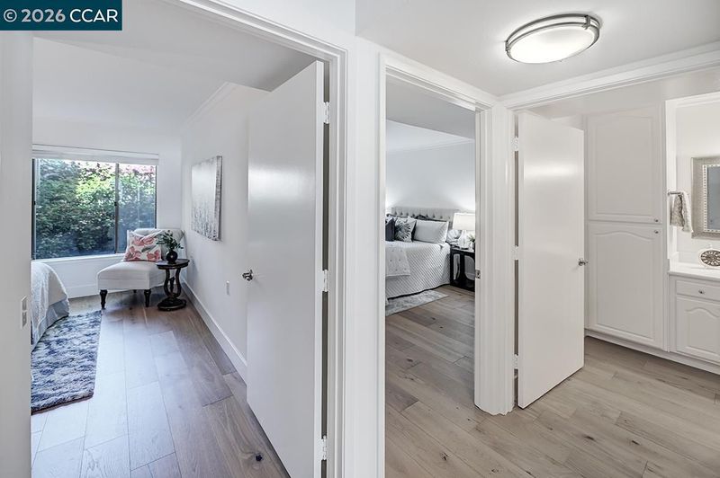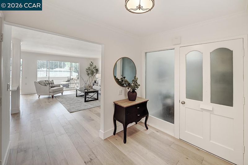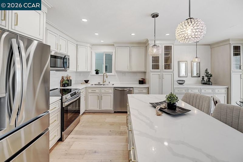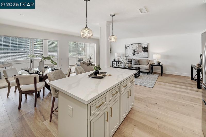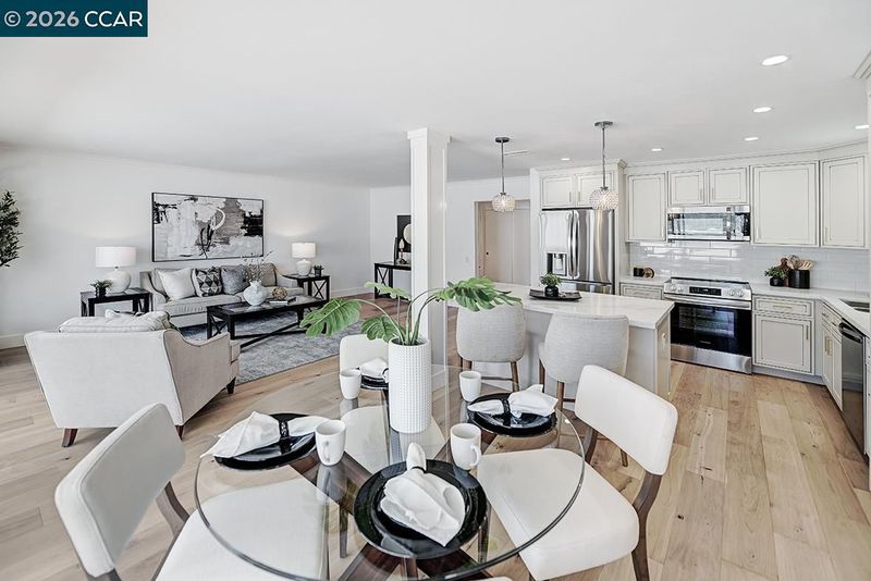 Spectacular totally remodeled Yosemite, 2 bedroom, 2 bath, LEVEL IN beauty! Mt Diablo views from the Primary Bedroom with a peaceful park like common area.. Nestled in an exclusive single row building, this corner/end unit boasts access to open space, a stunning view, no neighbors in the front, above or below. Open floor plan, skylights and a kitchen that features a spacious island, floor to ceiling high end Mirlux cabinets, quartz countertops, and stainless steel appliances. The dining room showcases a stunning soft gray built in full wall buffet cabinetry. Hard surface flooring throughout. Fully enclosed patio off the kitchen and living room has an open panel gate for visibility out to the front grassy area. Truly unique floor plan culminates in an expansive master bedroom with a spacious walk in closet. Two bathrooms with beautifully tiled showers. Hidden stacked washer/dryer. Walk to outdoor pool and lawn bowling. A MUST SEE!