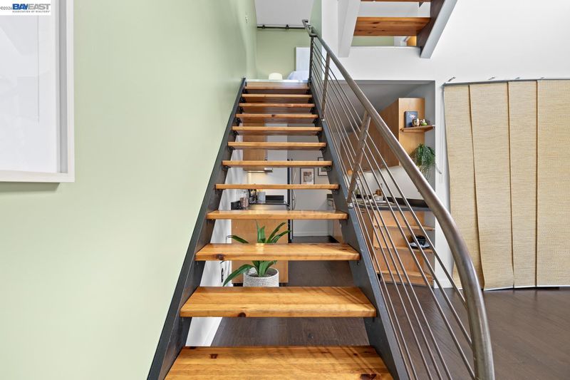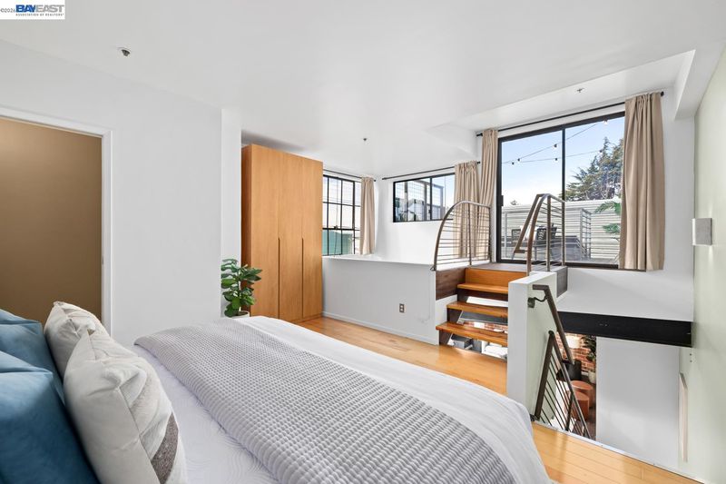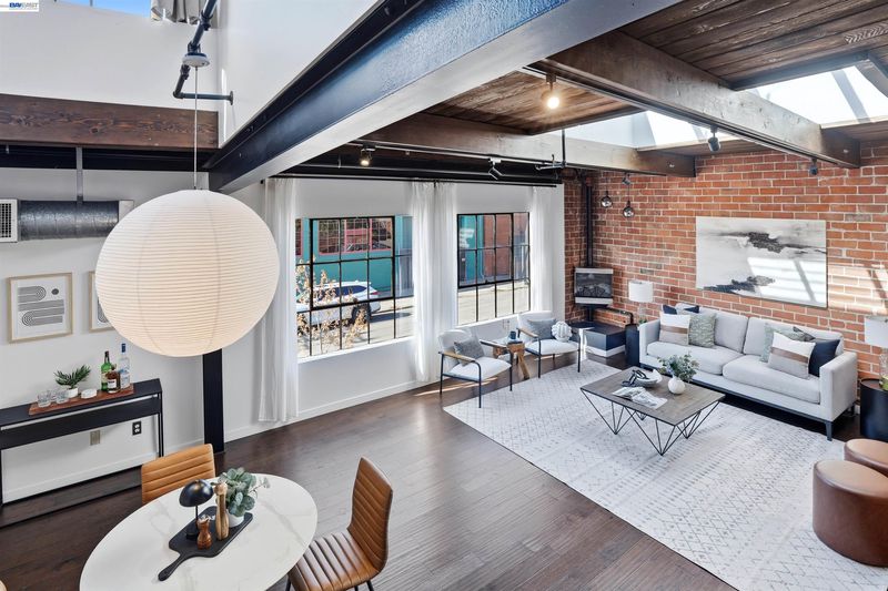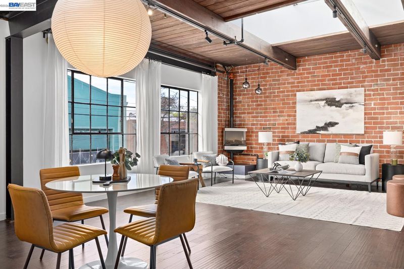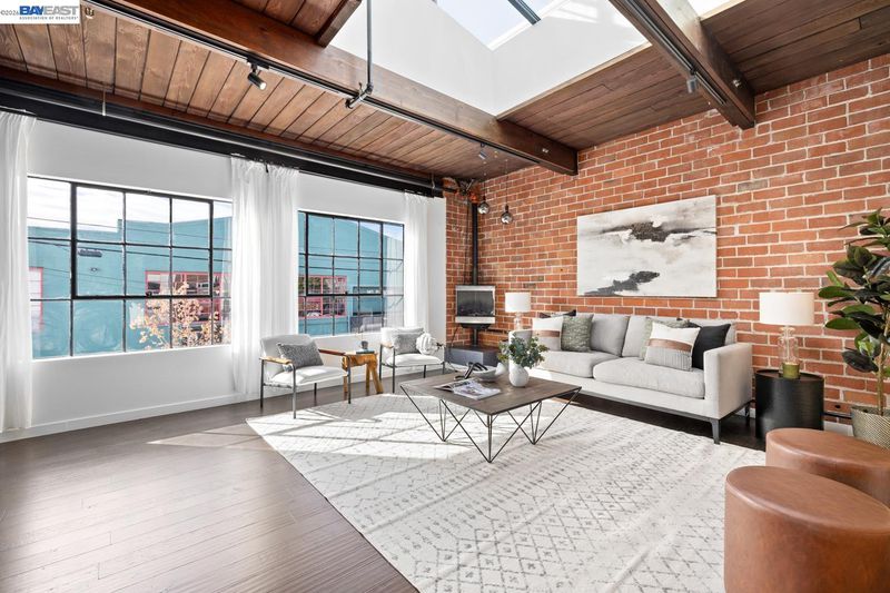 A rare brick-and-timber corner loft in the highly sought-after 1250 Powell Lofts! This Emeryville industrial conversion is loved by those who appreciate quality and design. Ideally located a couple blocks from the popular Townhouse and Doyle Street Café and the Greenway, a walking/biking path to biotech industries and Pixar just a mile away. With west facing Bauhaus windows, a skylight and a wall of upper windows looking out to your private rooftop deck, this home is filled with natural soft light. The high beamed ceiling, exposed brick walls and ironwork are the perfect blend of industrial style and beauty. Sunlight pours across the genuine hardwood floors, highlighting the custom staircase and cozy gas fireplace creating a home that feels open, but still warm and inviting. A private outdoor patio offers a sweet spot for morning coffee, winding down at the end of the day and weekend BBQs. Plenty of deep storage including the bedroom wardrobe, In-unit laundry, private garage storage and secure garage parking. The heart of the biotech & design hub with transportation, dining and 1 block from park & basketball courts.
