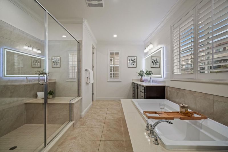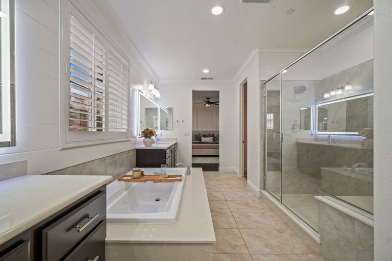 - Double Sinks, Full on Ground Floor, Primary - Stall Shower(s), Shower and Tub, Tub in Primary Bedroom, Updated Bath